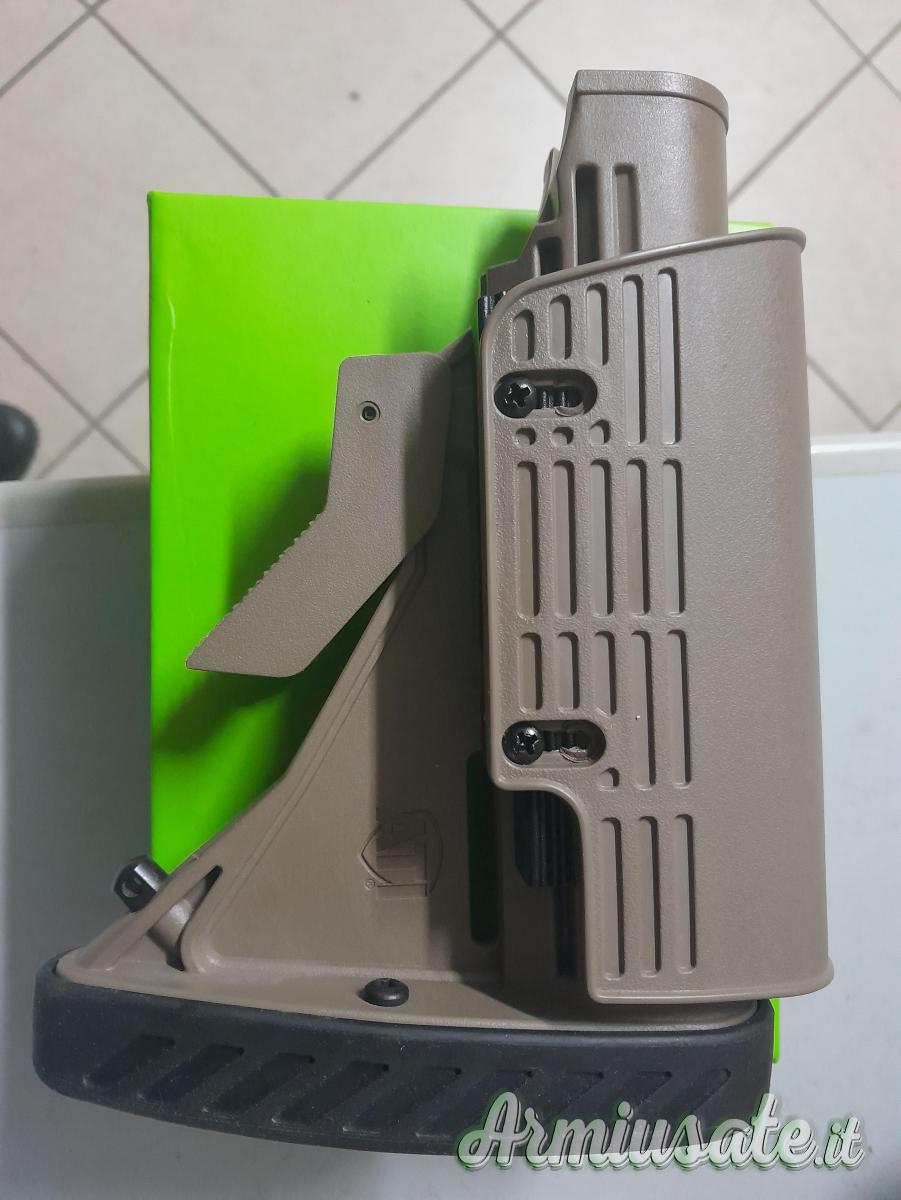 Calcio made in Usa per M4 buffer commercial, dotato di poggiaguancia regolabile e pad antirinculo, colore desert tan, nuovo cedo a euro 60,00 (spedizione euro 9,00).