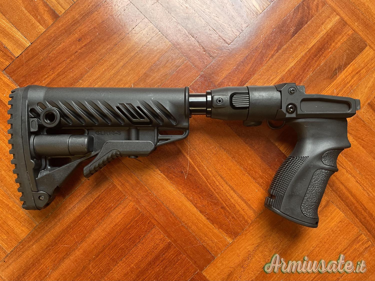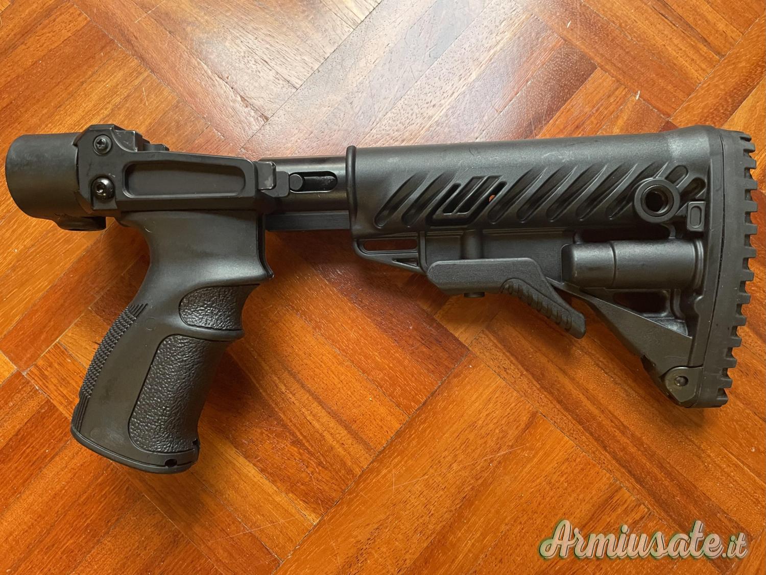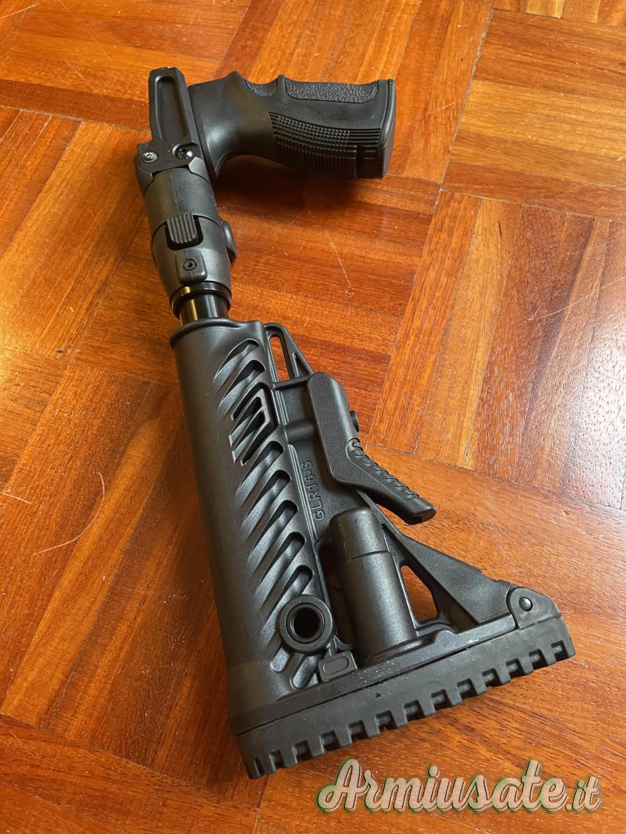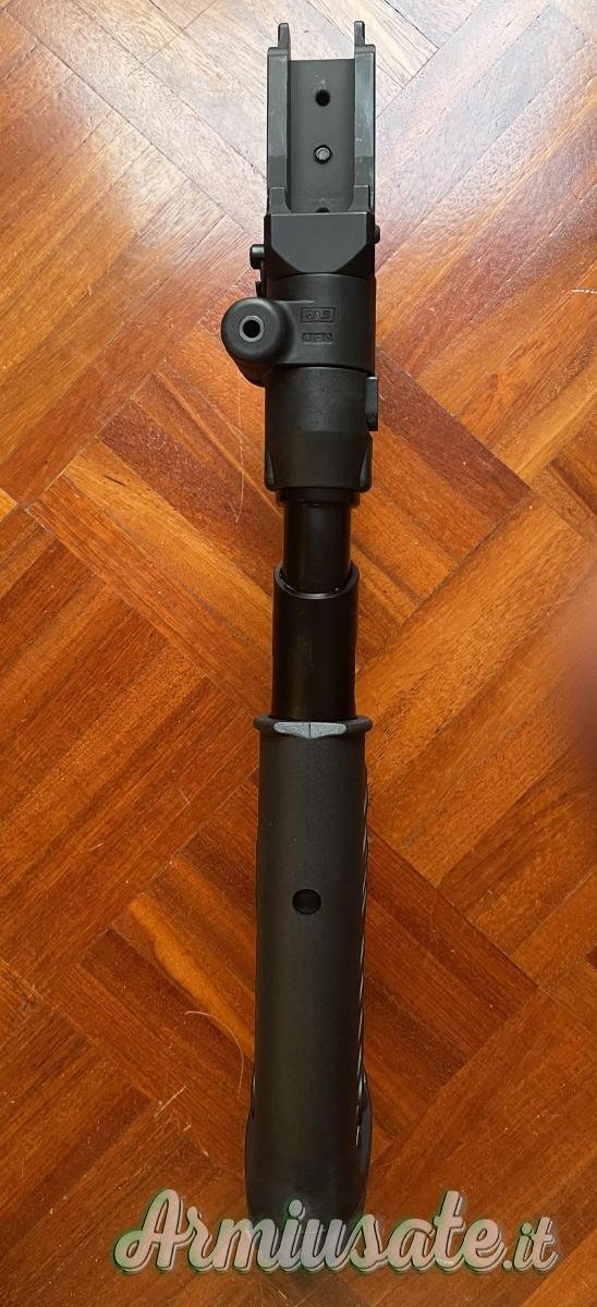 Vano di emergenza integrato per riporre batterie, munizioni, kit di pulizia, ecc.). L'assorbimento dell'energia di rinculo avviene tramite un pistone interno – riduzione della sensibilità di circa il 35%.