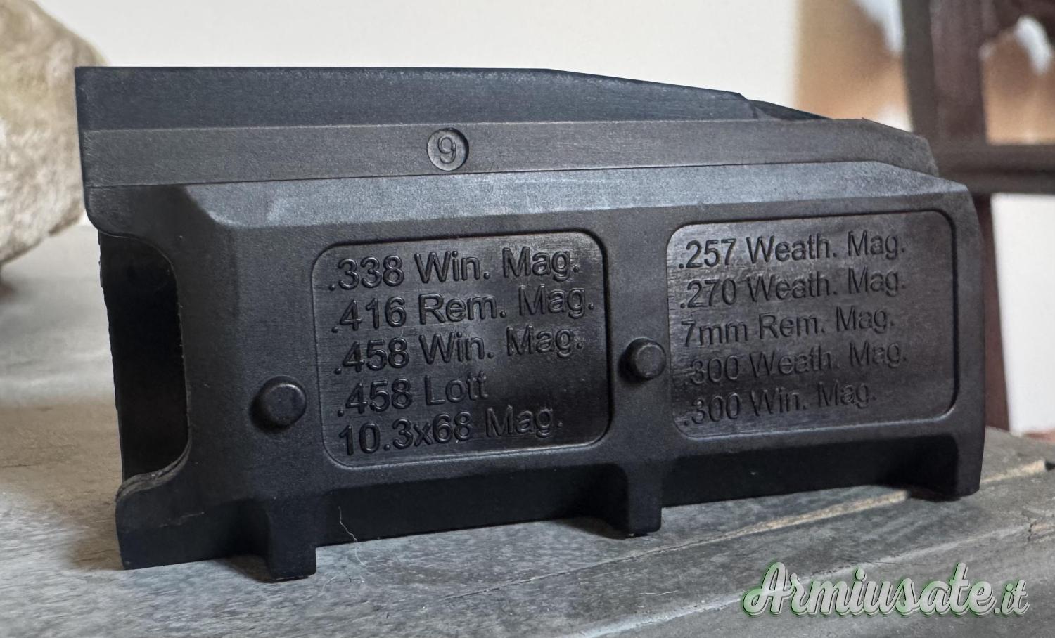 Freno di bocca, inserto caricatore e una scatola di cartucce RWS inclusi.