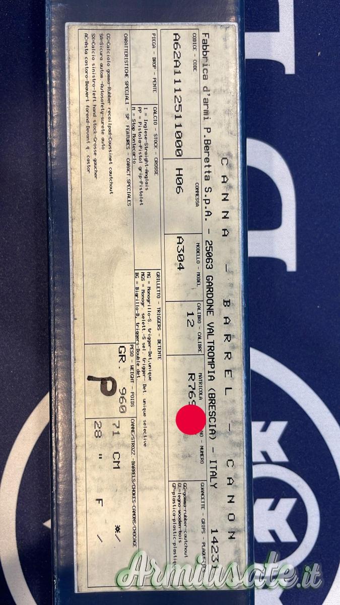 Canna NUOVA per semiautomatico Mod. 304 Cal. 12 Beretta 71 X con bindella, camera 70 mm. ULTIME RIMASTE