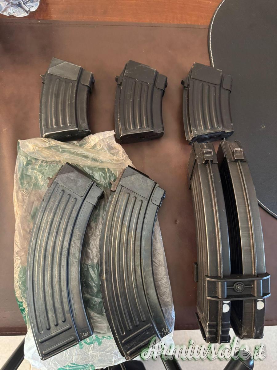 Caricatori in metallo per tutti gli Ak47 calibro 7,62x39, usati pochissimo ex arsenale jugoslavo, cedo a euro 35 cadauno. 4 pezzi da 30 colpi e 2 pezzi da 10 colpi. Spedizione possibile da definirsi.