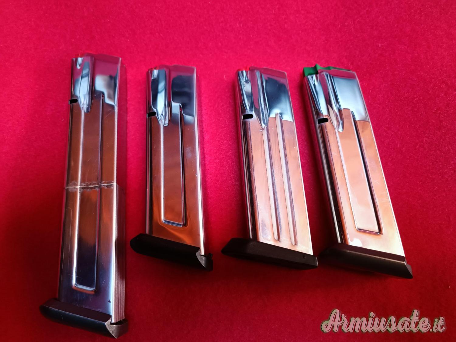 CEDO 4 CARICATORI X TANFOGLIO GOLD CUSTOM 9X21 CON FUSTO 38SA COME NUOVI COMPLETI DI TUTTO.