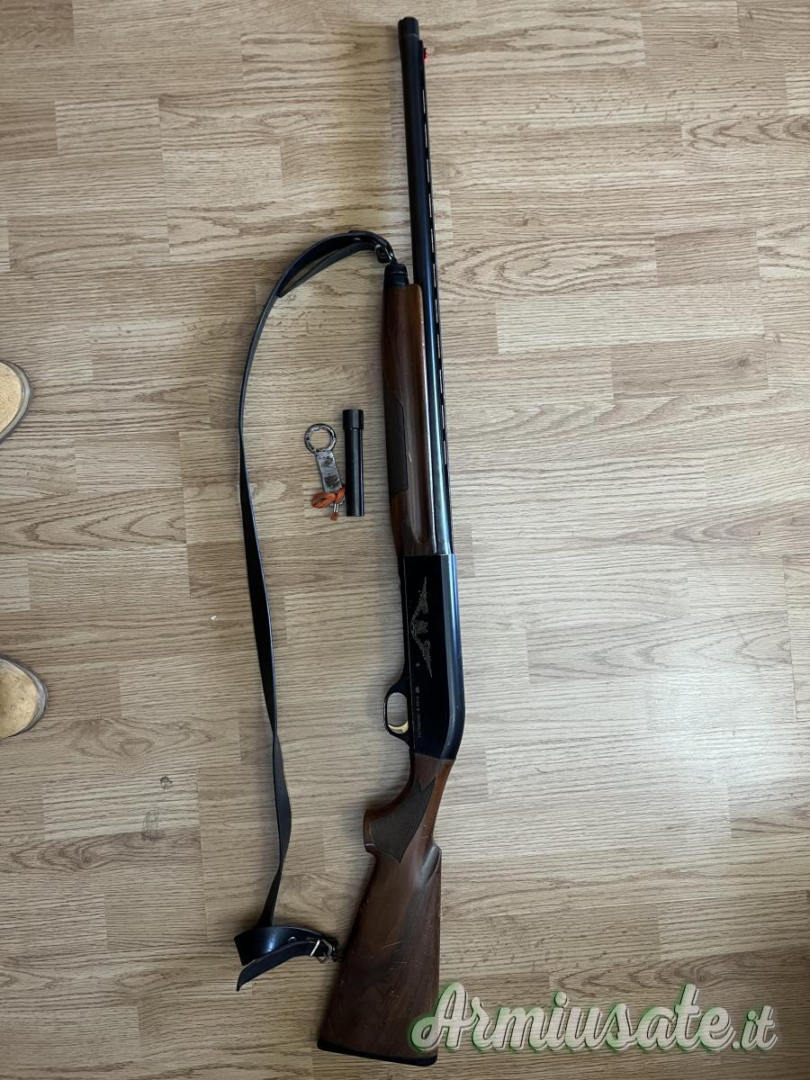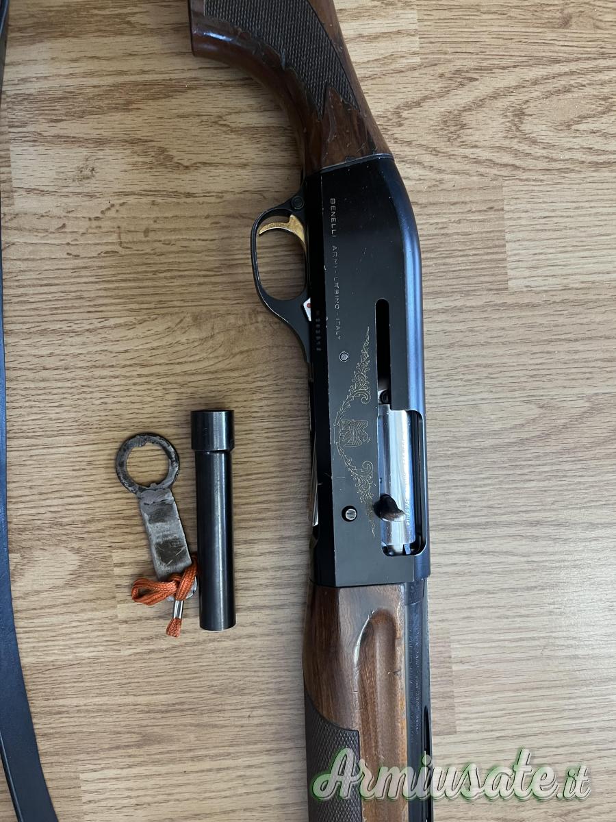 Benelli cal 12 modello lusso con incisioni e grilletto dorato fine anni 80, canna cilindrica con strozzatore esterno e chiave inclusa meccanica inerziale perfetta.