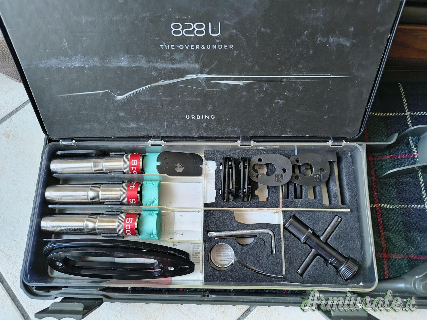 Canne da 81cm e kit strozzatori esterni originali, piastrine per deviazione calcio e valigetta dedicata.