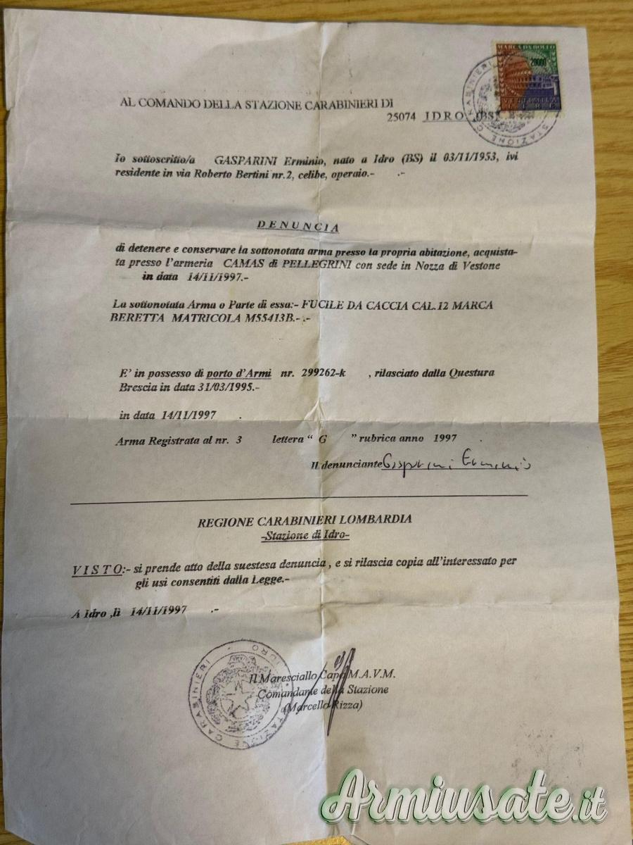 Vendo per inutilizzo fucile sovrapposto Beretta Silver Pigeon, calibro 12. L'arma è in condizioni eccellenti, quasi pari al nuovo, con pochissimi colpi sparati.