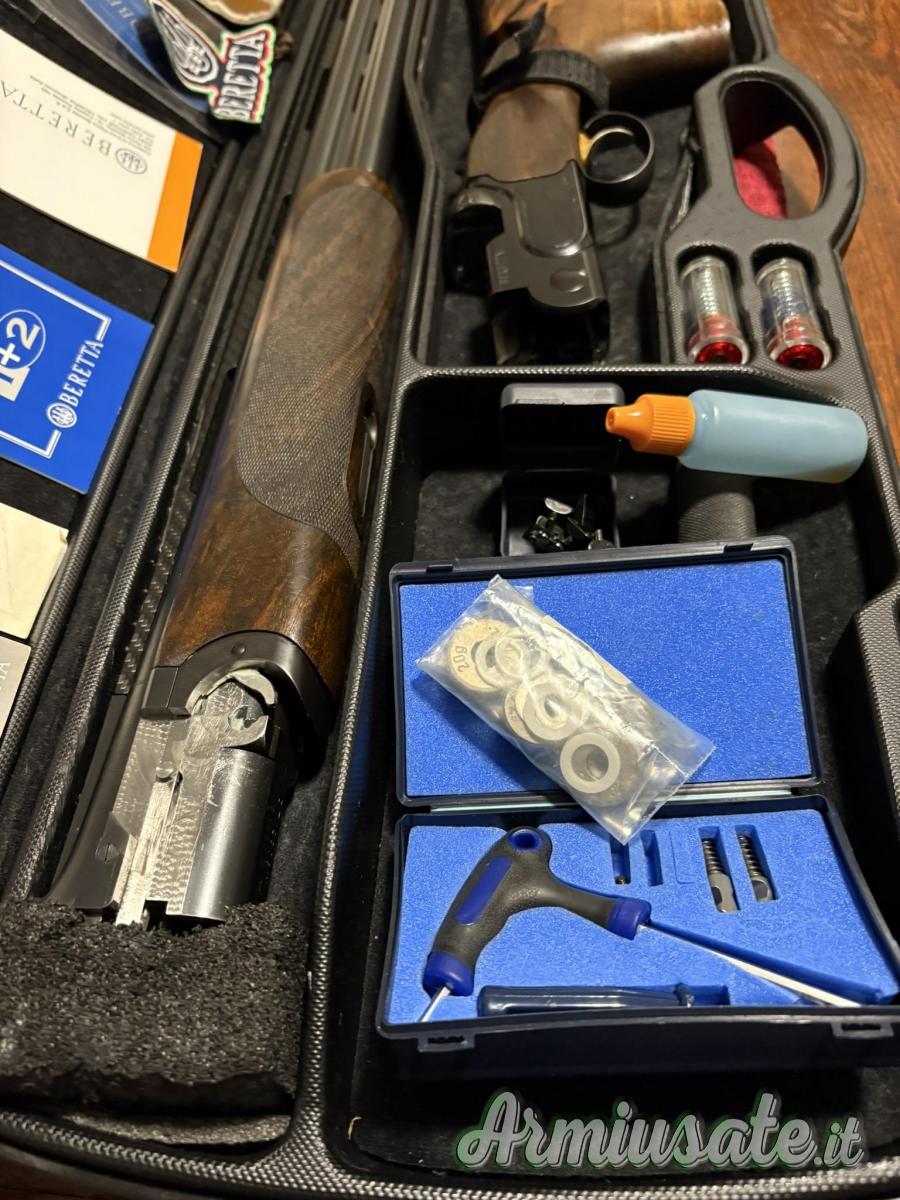 Calcio regolabile originale Beretta con due calcioli di misura diversa. Grilletto dorato anatomico regolabile (fornisco anche il suo originale). Peso canne scariche kg 1,450. Massimo carico 1590 (14 pesi da 10g). strozzatura 2/1 lunghezza canne 76cm.