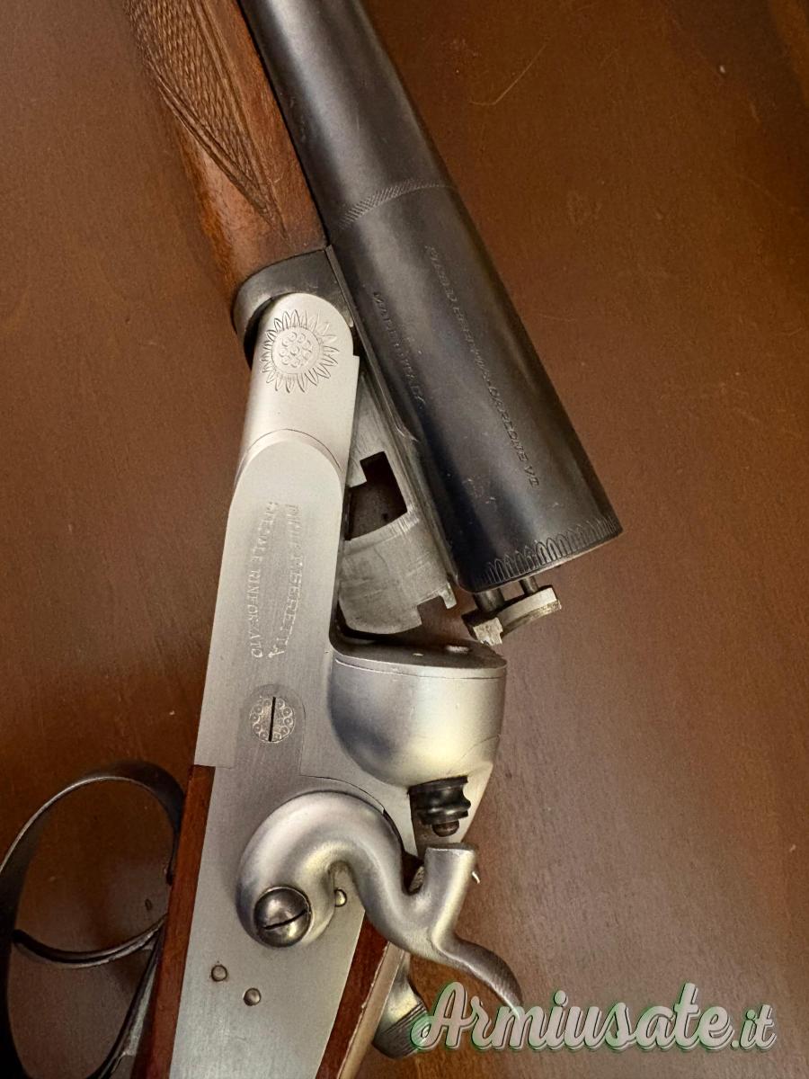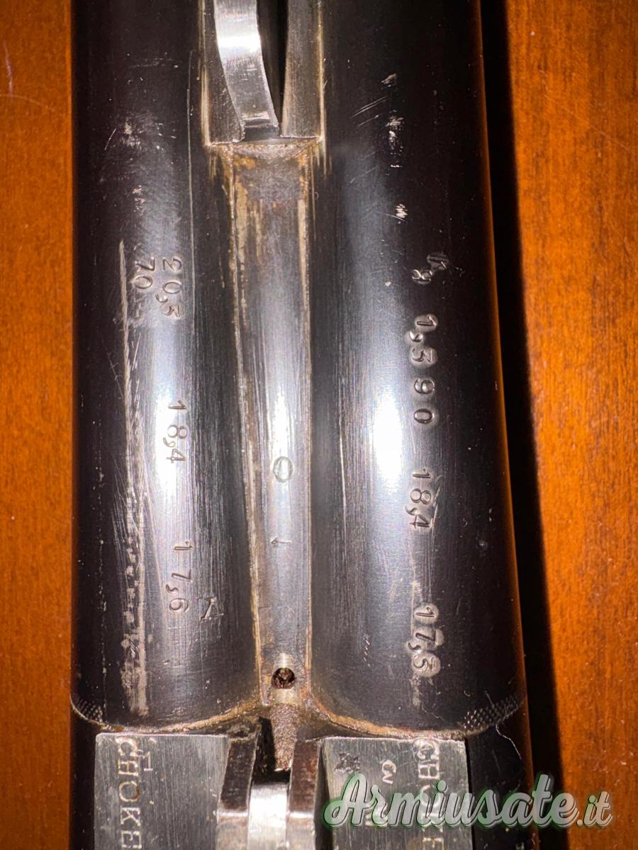 Condizione: Usato, buone condizioni generali con segni del tempo, da collezione e/o utilizzo venatorio. La meccanica di chiusura e sparo è efficiente e solida (nonostante non sia stata ispezionata da un armaiolo, i punzoni "FINITO" e "PSF" confermano la prova a polvere senza fumo all'epoca). Questo fucile Beretta Monoblock del 1955 è un pezzo di ottima fattura italiana. È ideale sia per il cacciatore appassionato di armi classiche sia per il collezionista che desidera un pezzo storico e funzionante. Canna Dx: $\varnothing 18.4$ / Volata $17.3$ - Canna Sx: $\varnothing 18.4$ / Volata $17.5$