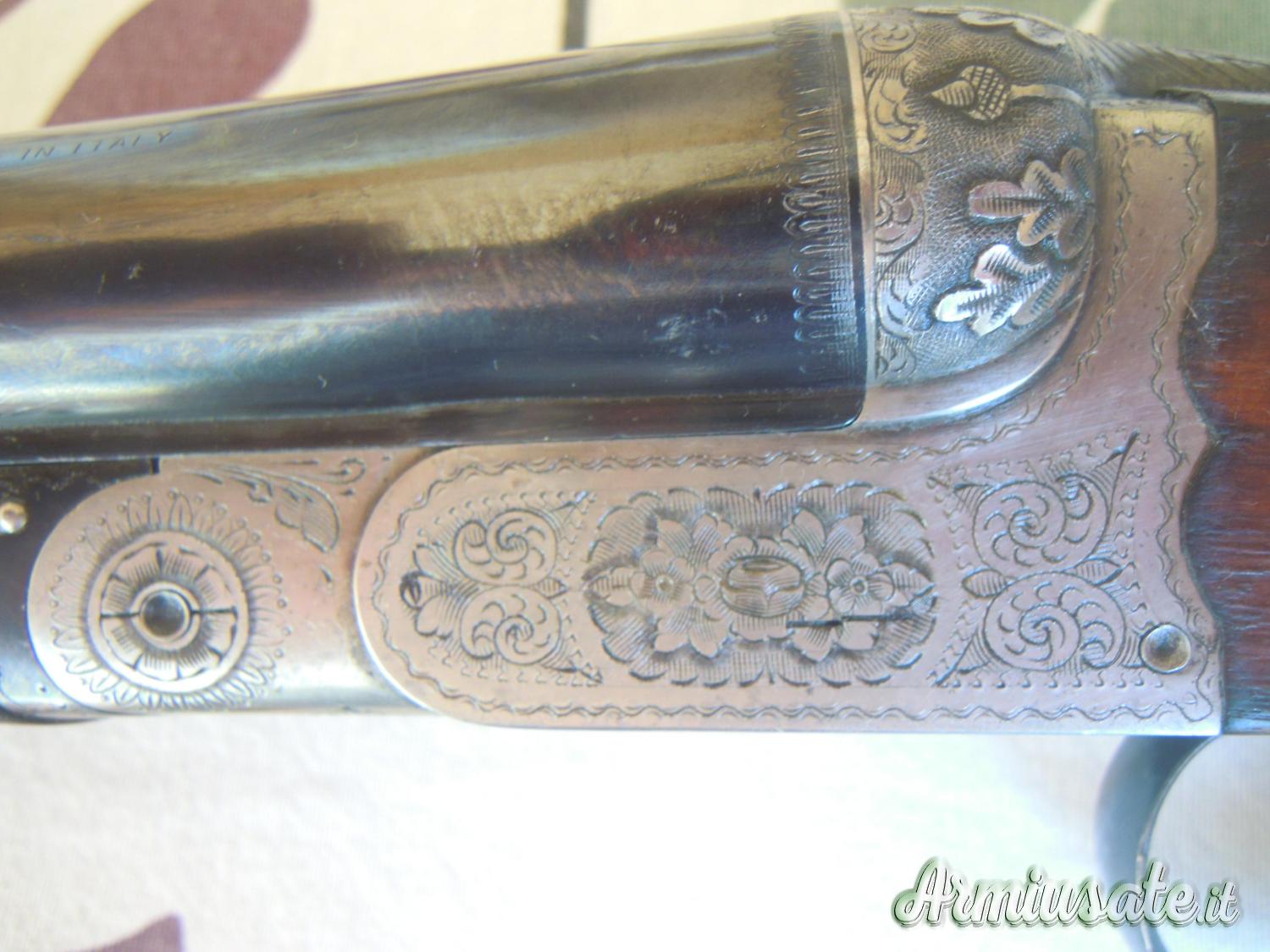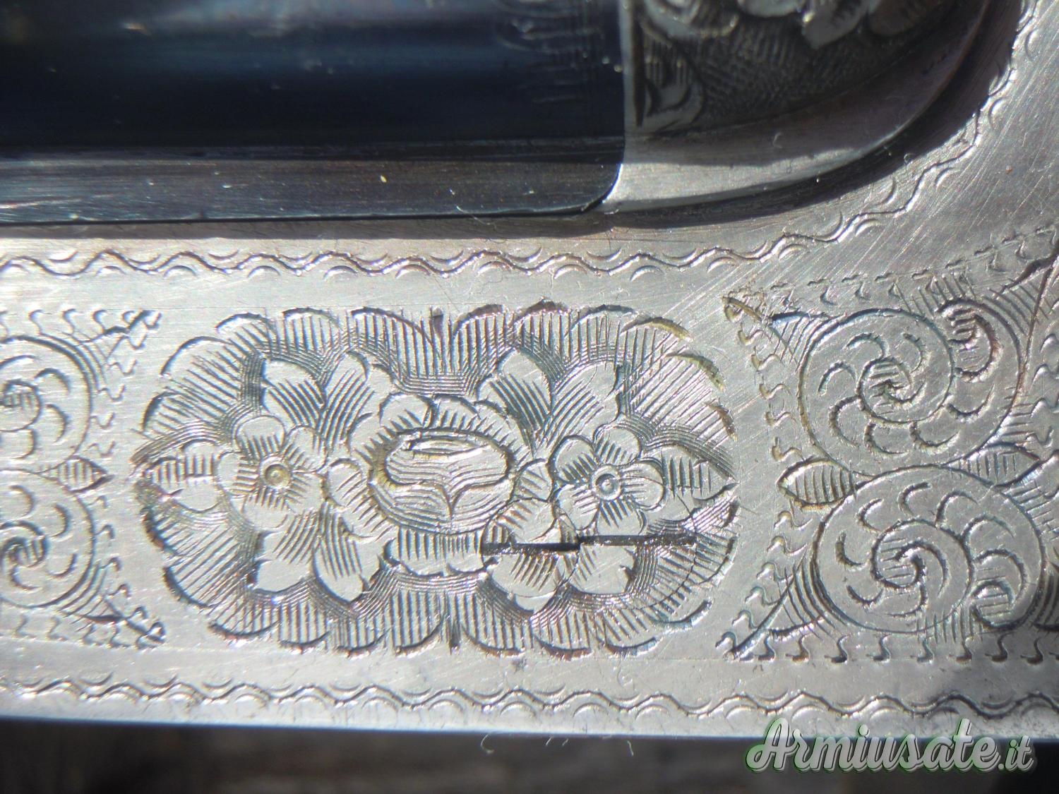 Si tratta di un’arma particolare, dalla bascula in argento vecchio splendidamente incisa, visto l'anno di produzione arma prodotta in Italia dai nostri maestri armieri e non in Turchia le canne lunghe 70 cm e strozzate 3/1.