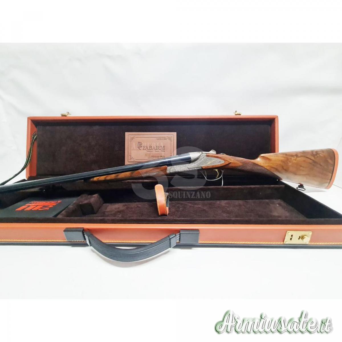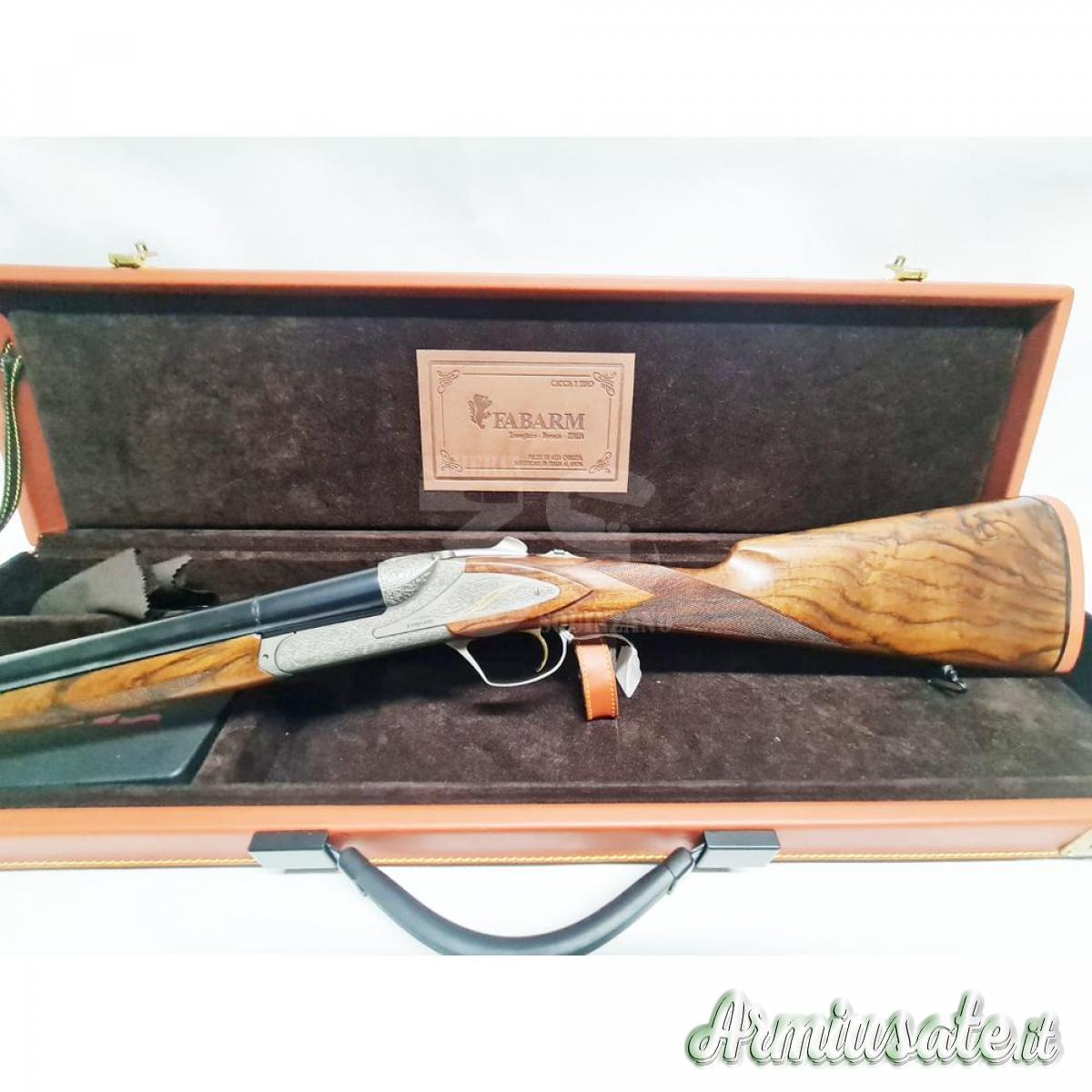 Raffinata doppietta della Fabarm dallo stile inconfondibile, nuovissima (una volta in riserva). Canne 76 cm strozzatori interc. Tribore magnum, gigliate (acciaio),con strozzatori "Inner HP" L. 82 mm, calcio Inglese con calciolo in legno, oliato a mano, leggerissima (2,500 Kg) estrattori inseribili e escludibili a secondo della opportunita, monogrillo selettivo, cartelle lunghe con inserti in oro, chiusura con quattro ramponi. Viene ceduta nella sua valigetta in cuoio "Estethe" originale Fabarm.