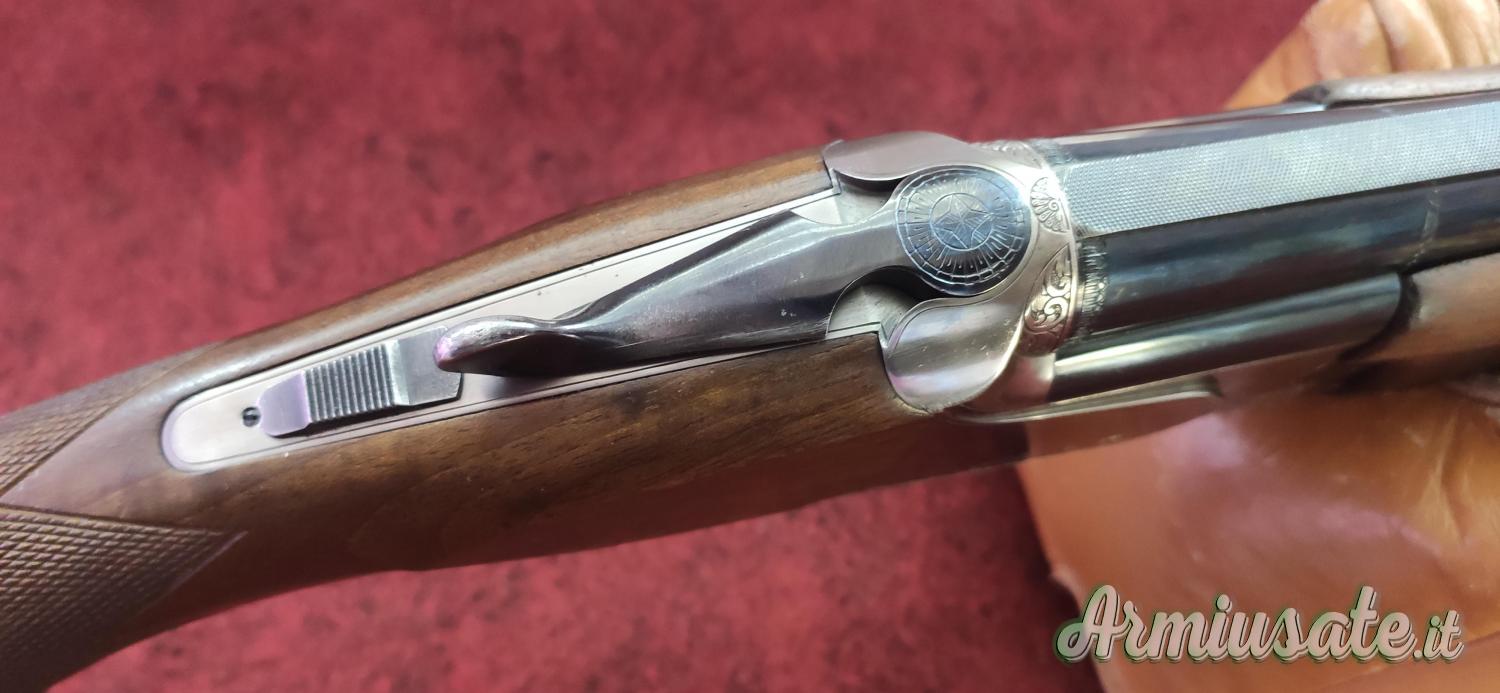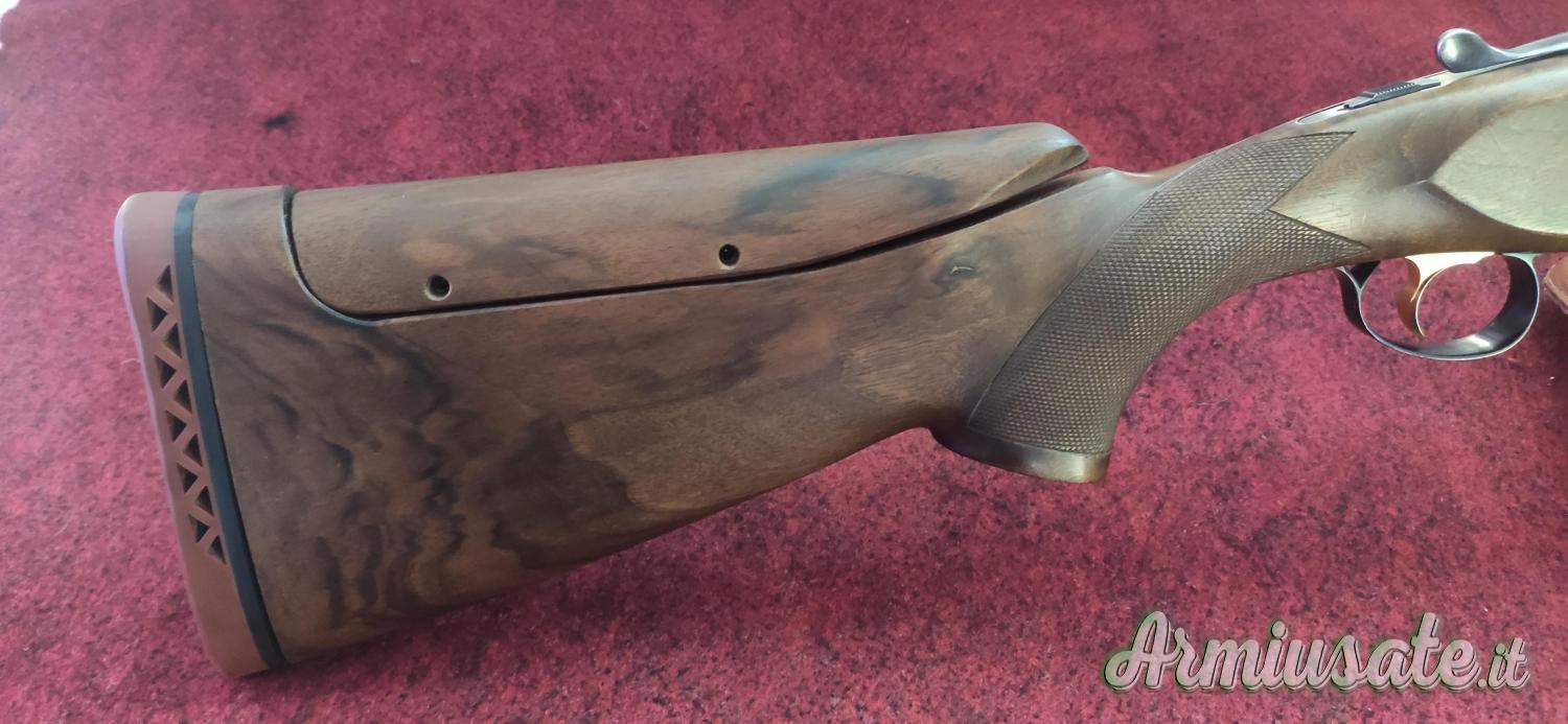 Bascula in acciaio temperato tirata a lucido, grilletto dorato con scatto netto e leggero, calcio ed asta in legno di noce con venature, calcio con nasello regolabile in alzo e deriva, impugnatura con palmo anatomico, pieghe per persona destra.