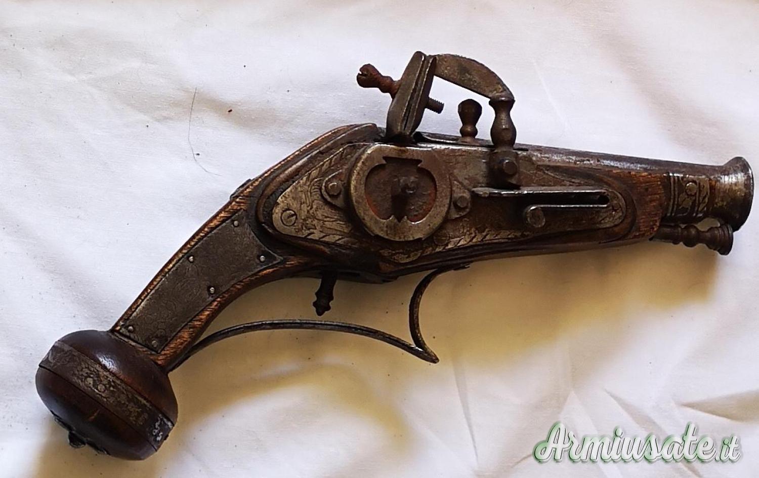 Pistola avancarica pietra focaia innesco a ruota (arma antica)