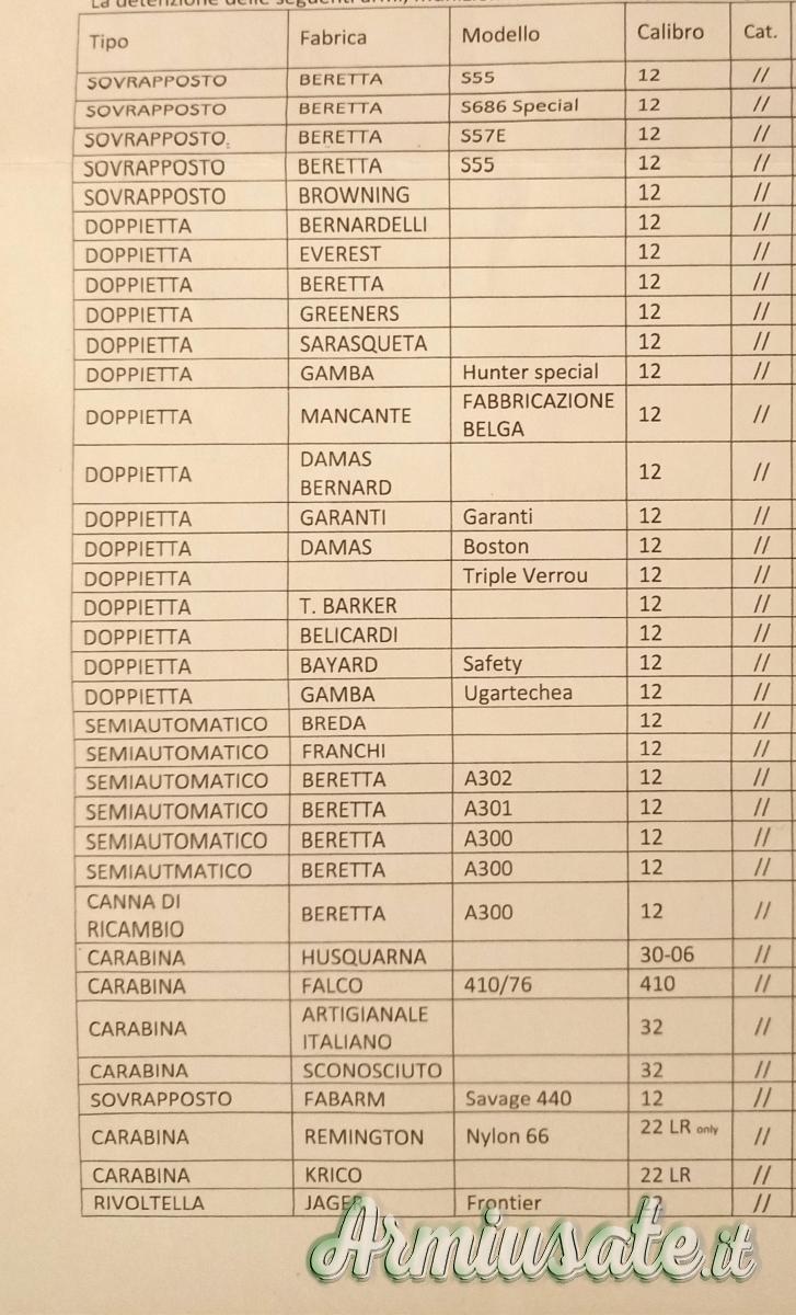 Chi fosse interessato alle armi indicate nell'elenco, chiamare direttamente il seguente numero +393334189899 signor Ubaldo