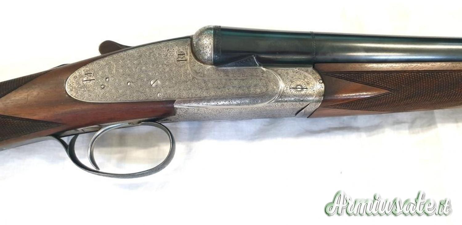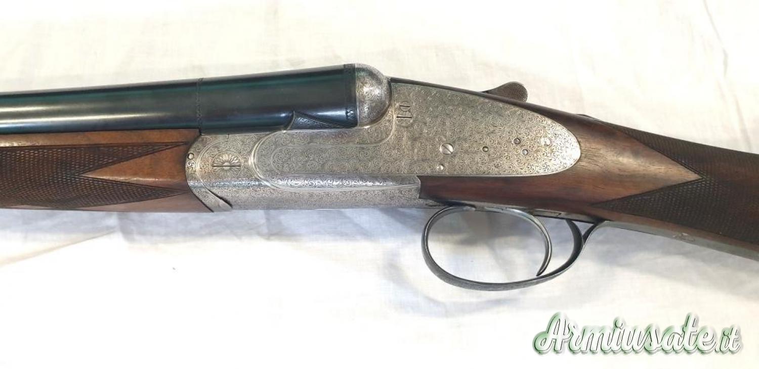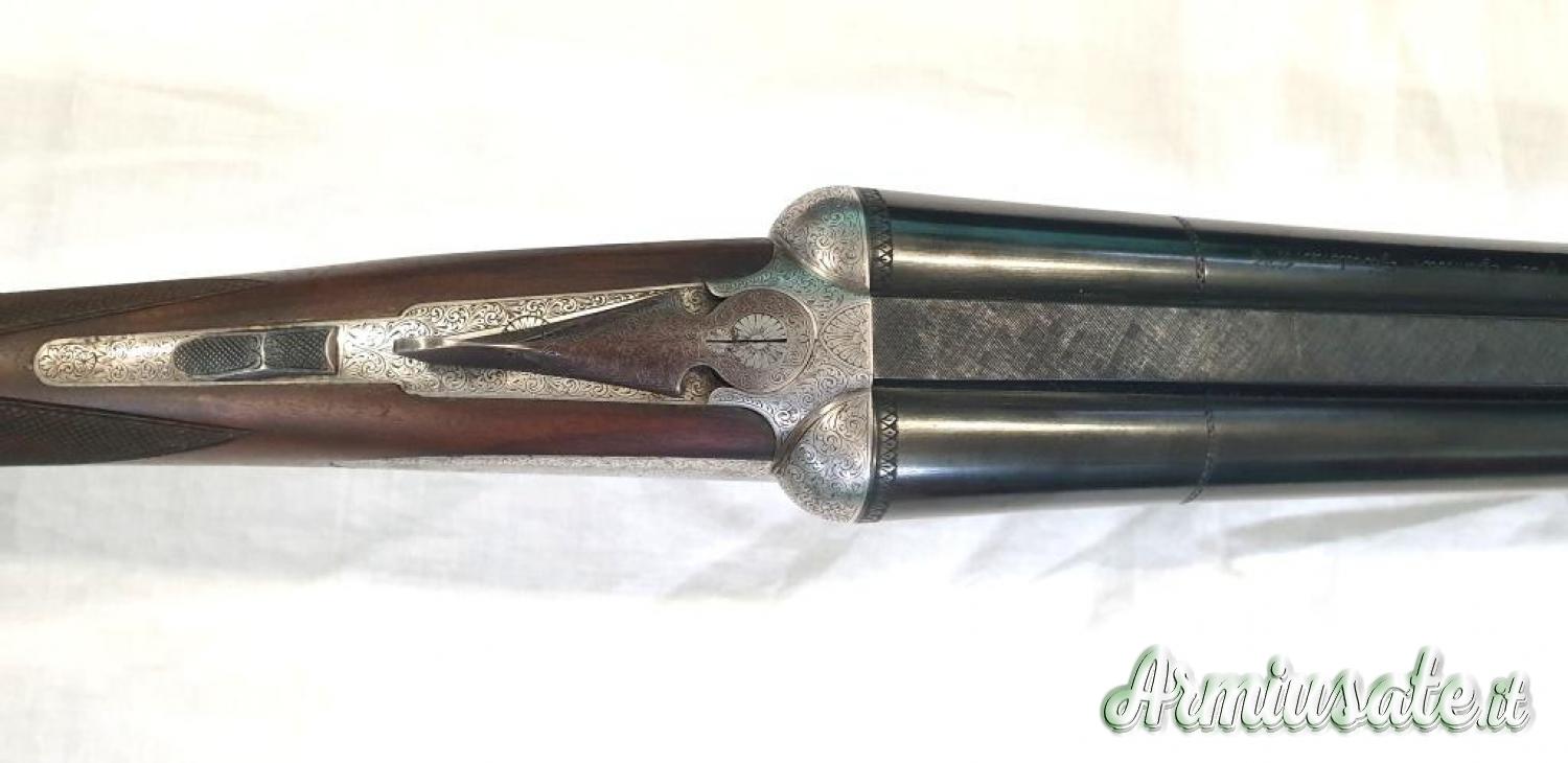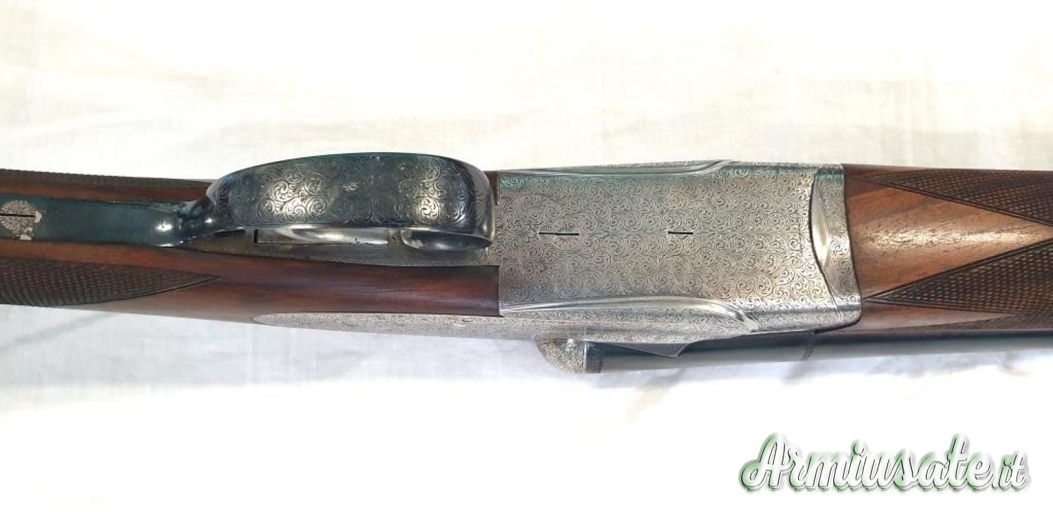 Cal.12/70, canne 71 cm acciaio original Boehler, strozzature ***/*, foratura 18,3 mm, batterie laterali sidelock tipo Holland & Holland monogrillo, ramponi a triplo giro di compasso, estrattori automatici