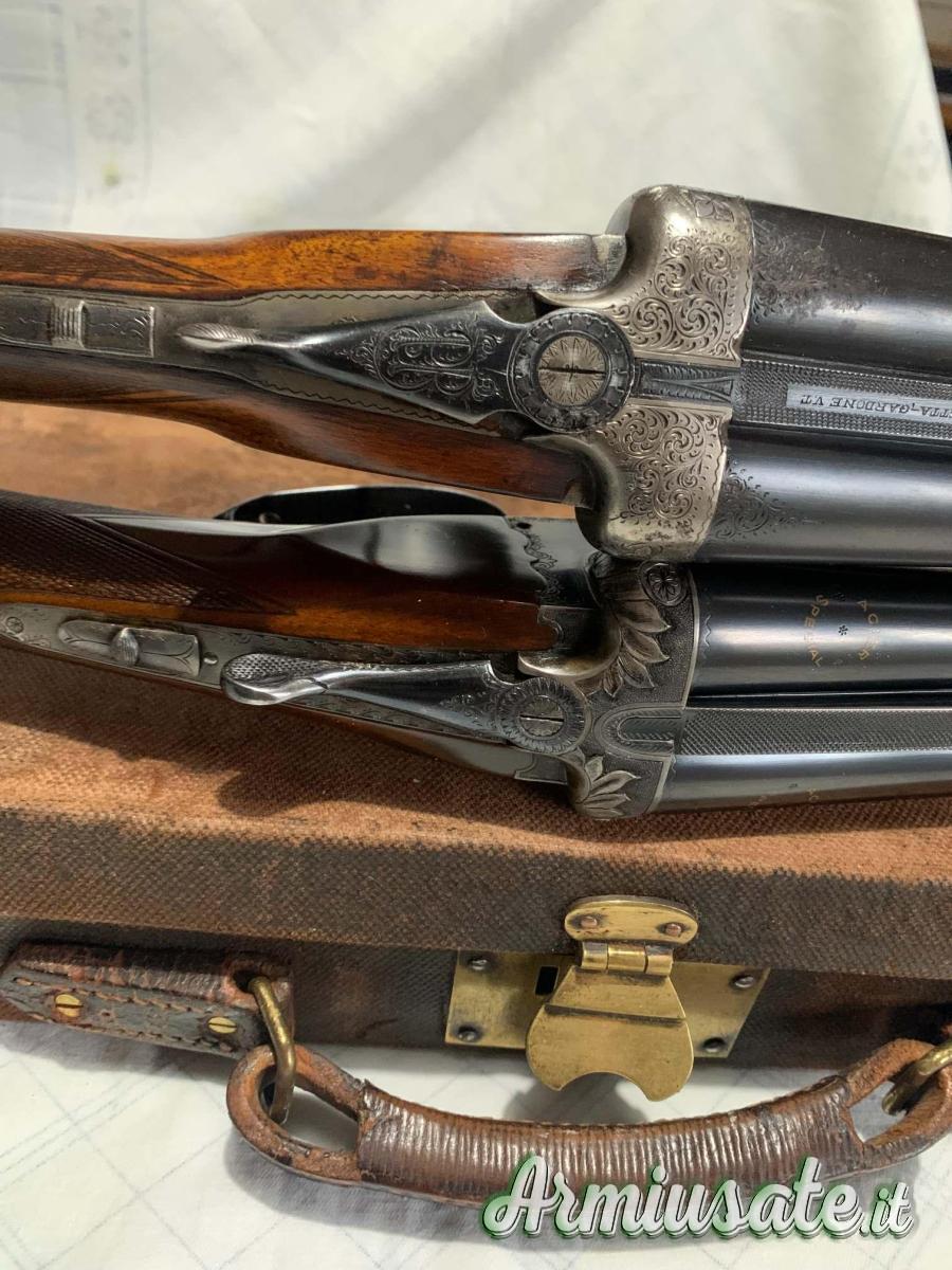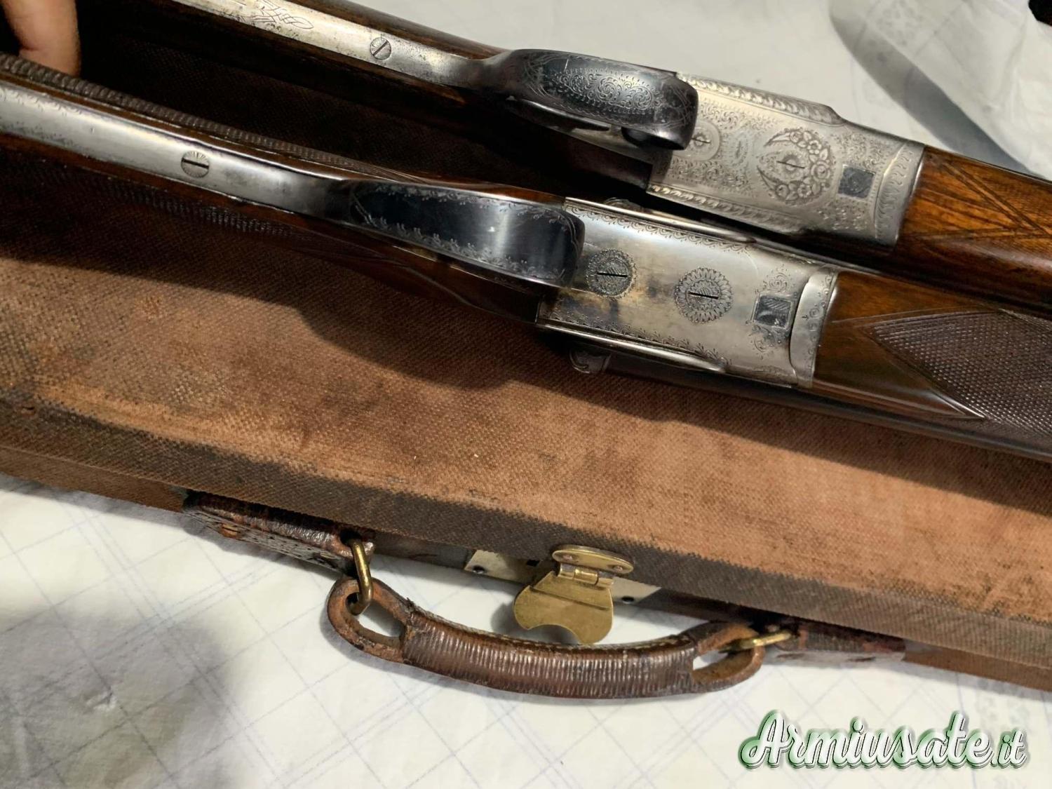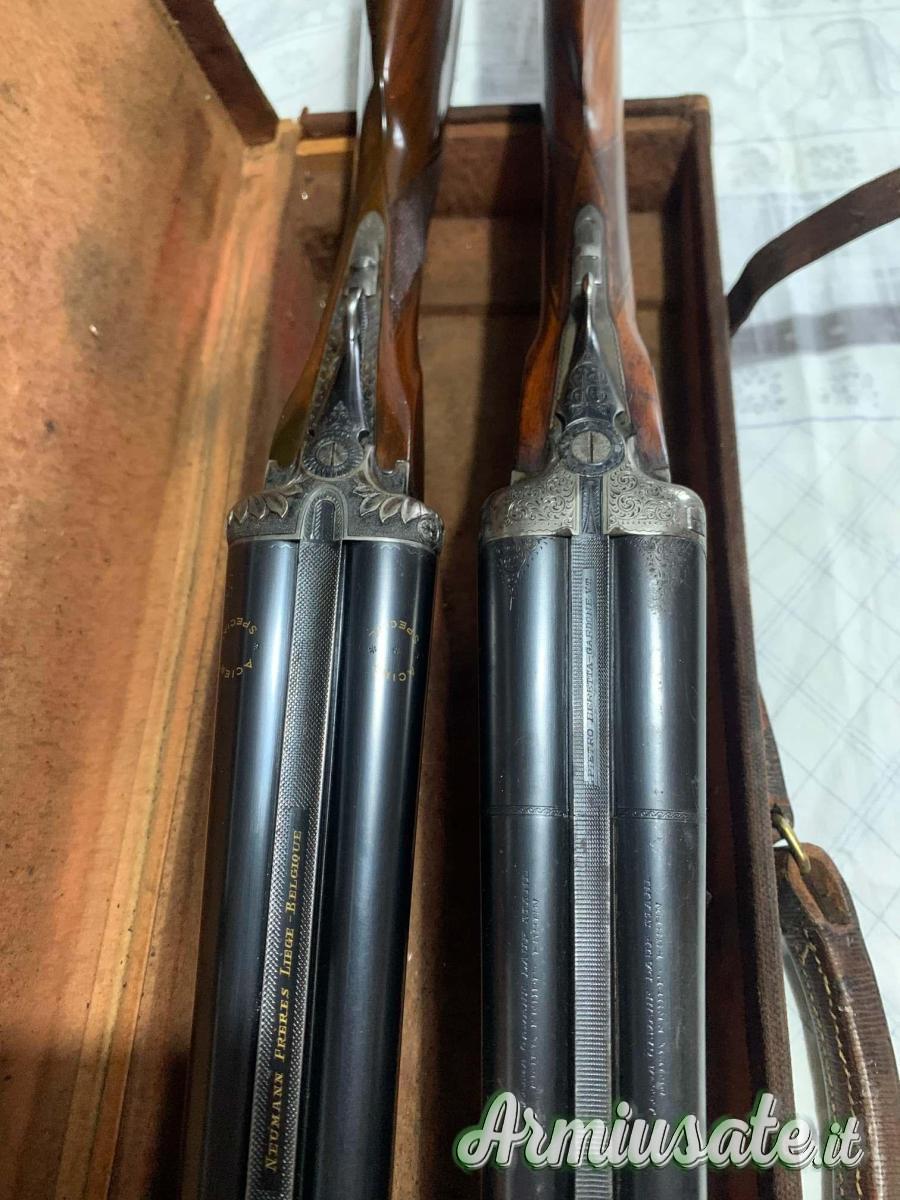 1. doppietta prodotta a Liegi, marca Neumann Freres, anno 1928, calibro 12/70, canne da cm. 68, strozzate xxx/x, peso totale 3,030 kg, calcio ed asta all'inglese lucidati ad olio, estrattori manuali, lunghezza calcio 36 cm., in eccellenti condizioni, tutta originale.