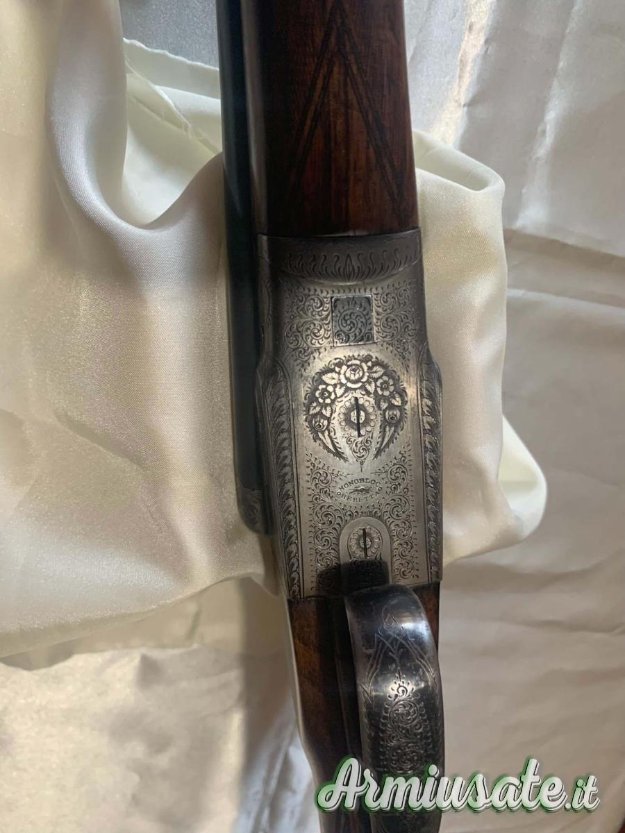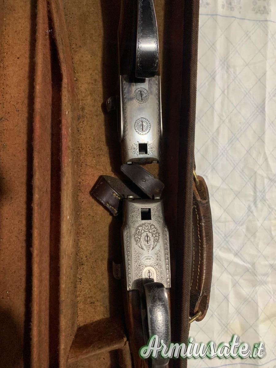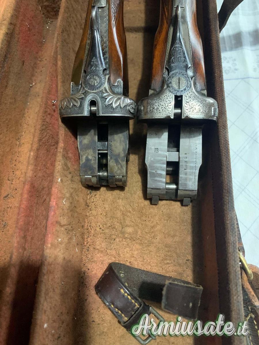 2. Doppietta P. Beretta, anno 1934, calibro 12/70, triplice chiusura, canne cromate da 72 cm, strozzature x/x in eccellente acciaio krupp essen, calcio ed asta all’inglese, estrattori manuali, peso kg. 3,120, calcio cm. 35,5. Da ristrutturare.