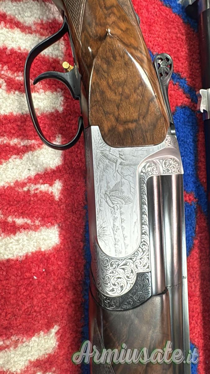 cal 12 marca Perazzi mod SC3 trap matricola 110000 con due coppie di canne una stessa matricola del fucile lunghezza 75 strozzatura XX.X più seconda canna 75 strozzatori entrambi i tubi anno produzione della seconda canna 2022 chiave traforata e corona in oro , più la firma in oro di Mauro Perazzi sotto il ponticello , più grilletto regolabile il tutto pari al nuovo.
