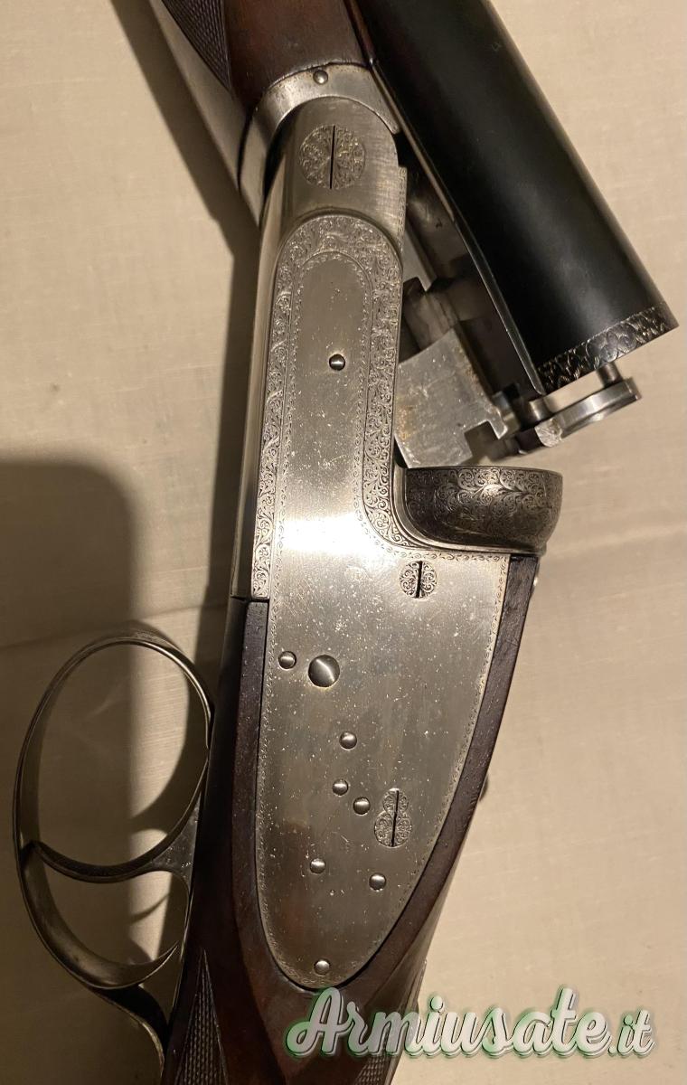 Lunghezza canne 70, forature 18,4, lunghezza calcio 34 cm, anno di costruzione 1976, monogrilo, incisa da GRANETTI. Piega al tallone 55, al nasello 35. Prezzo 10.000€ tratt.