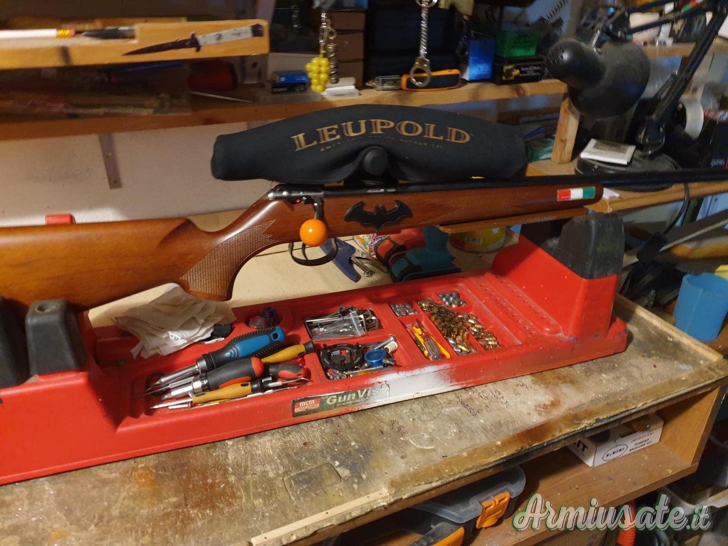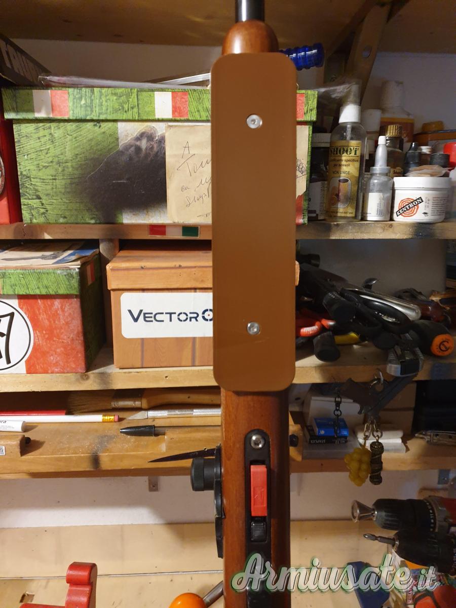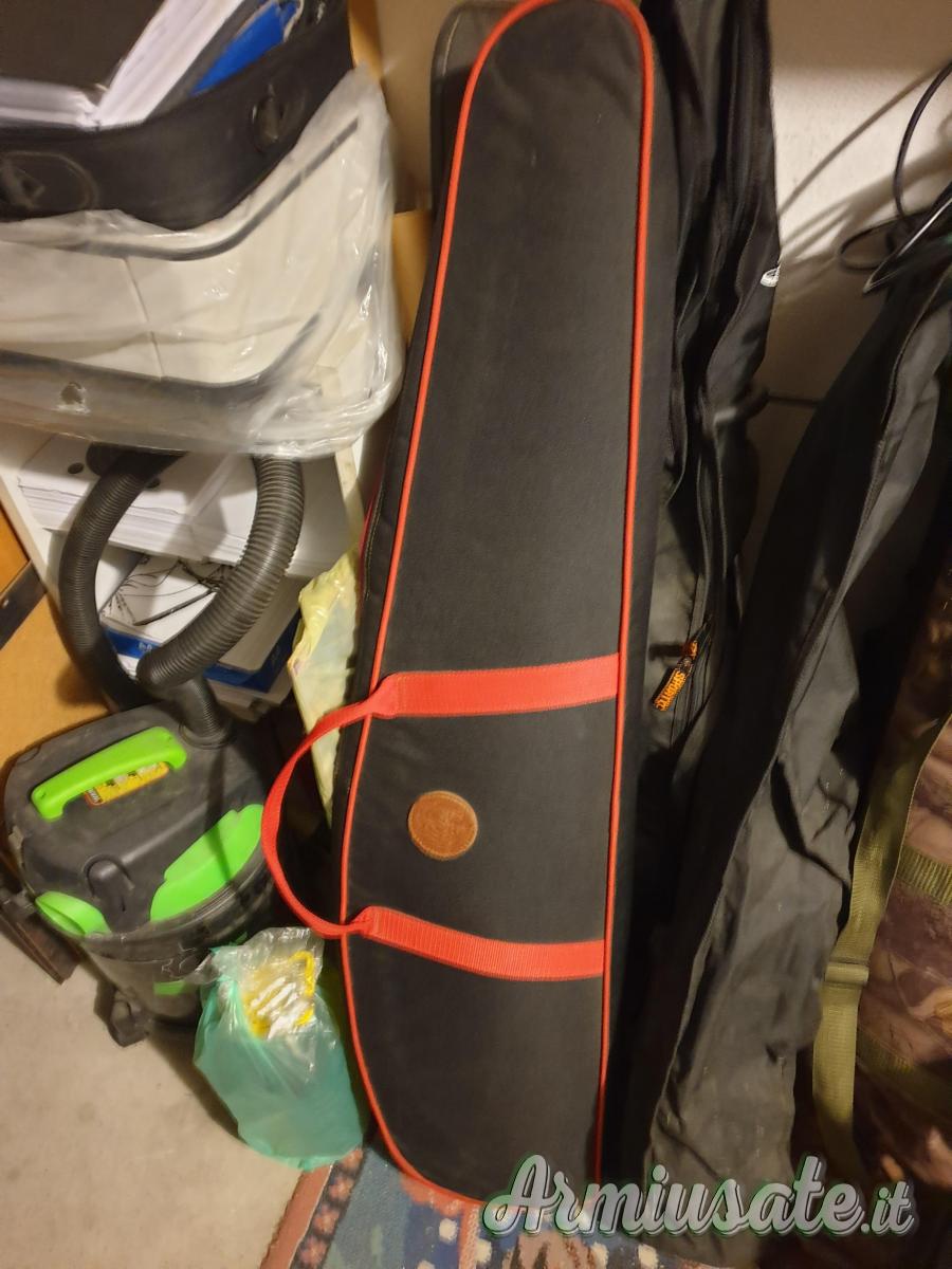 ATTACCHI COLORE ORO,CUSTODIA SUPER IMBOTTITA, FINTO CARICATORE ORIGINALE,3 CARICATORI ORIGINALI, 2 DA CINQUE,UNO DA 10, ASTA E SCOVOLI PULIZIA, porta munizioni da banco, monta UNA PIASTRA IN ACCIAIO SMONTABILE X APPOGGIO REST.