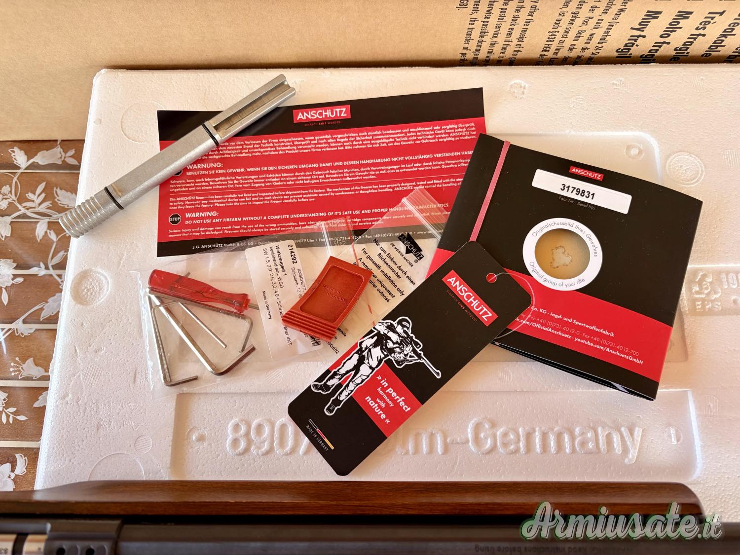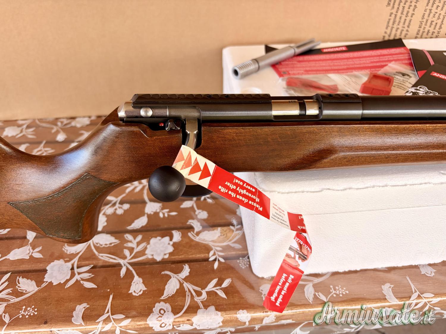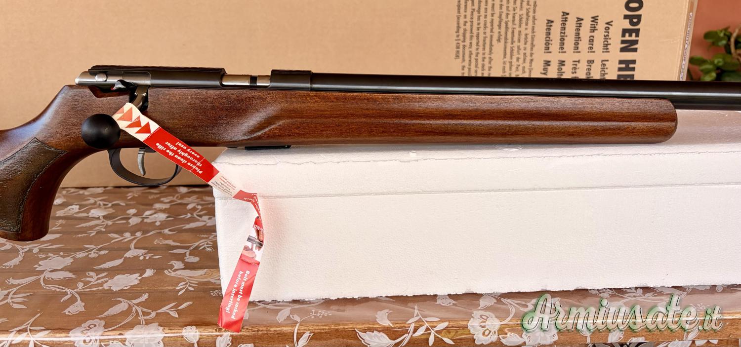 La carabina ha sparato non più di 150 colpi, soltanto provata, nuova senza alcun segno di usura, precisione altissima, completa di scatola e accessori originali, caricatore colpo singolo e guida bacchetta originale.