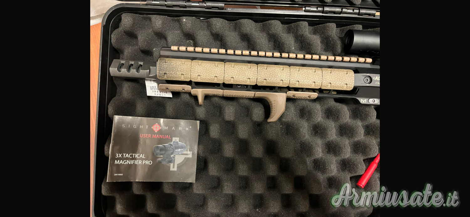 L’arma è stata usata due volte in poligoni dinamici, ha sparato circa 300 colpi. È, come da foto, personalizzata con add on mugpull (calciolo e hand guard). L’ho personalmente sempre manutenzionata anche nei periodi di inutilizzo (manutenzione ordinaria e straordinaria), con olio ove necessario e solvente ove necessario.