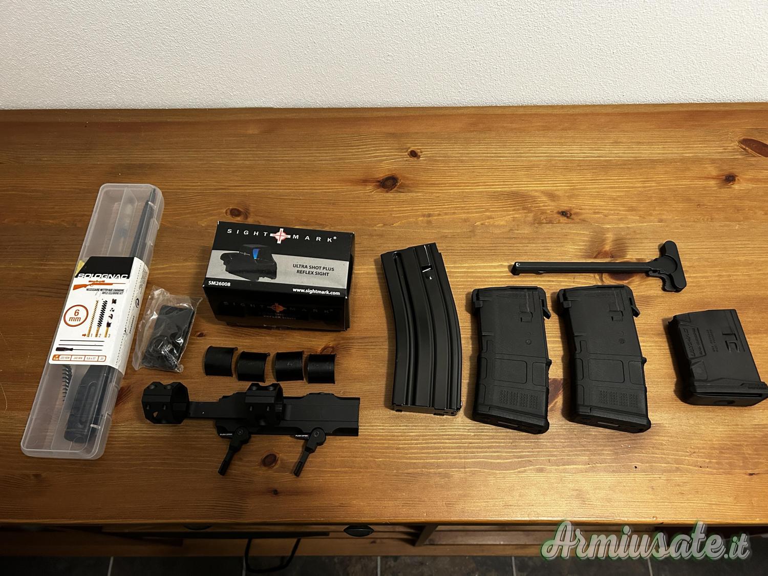 Inclusi red hot, supporto ottica, bipiede e kit pulizia.