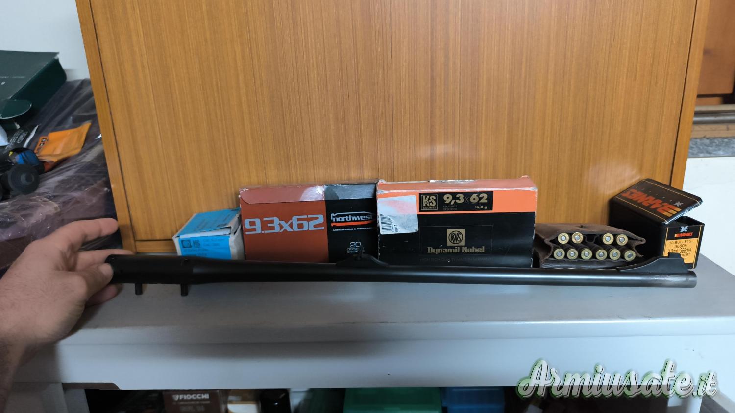 Canna 9,3x62' con caricatore e cartucce varie € 700