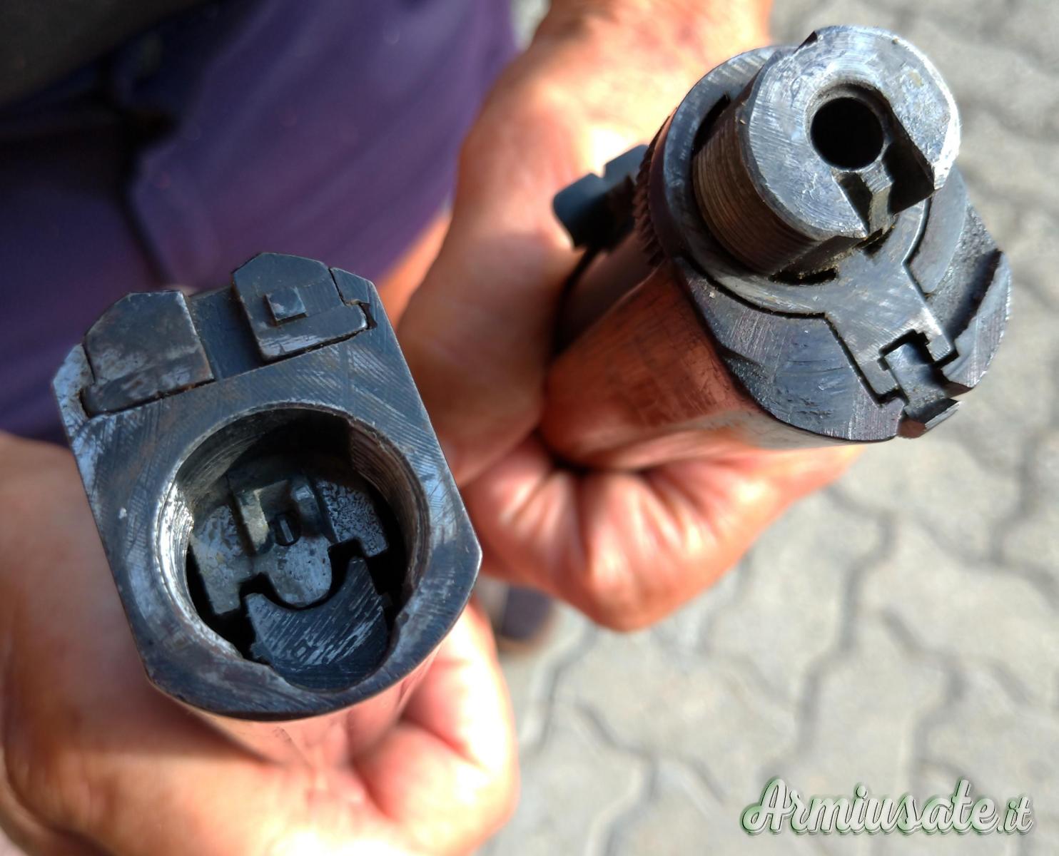Questa appartiene ai primi modelli prodotti, con sportello di caricamento delle cartucce sulla parte alta del calcio e marcata ancora FABRIQUE NATIONALE D’ARMES DE GUERRE HERSTAL – BELGIQUE.