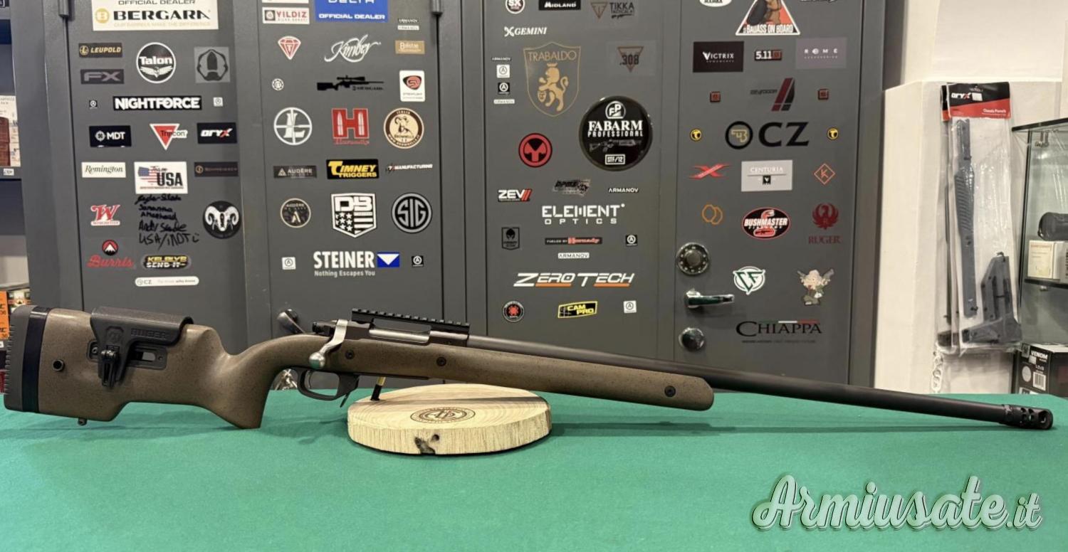 L'estrattore di tipo Mauser a lama fissa, garantisce un estrazione del bossolo, quando si arretra l’otturatore. Slitta picatinny da 20MOA montata di serie per dare maggiori capacità di elevazione per i tiri a lunga distanza. La canna a profilo pesante è forgiata a freddo in acciaio al cromo-molibdeno con rigatura 5R, è dotata di un freno di bocca ibrido per fucile Ruger Precision® per ridurre efficacemente il rinculo. La sicura a tre posizioni è facilmente accessibile e consente al tiratore di bloccare l’otturatore o di caricare e scaricare il fucile con la sicura inserita. Il calcio target bicolore presenta un pettine regolabile, lunghezza del calcio regolabile con calciolo in gomma morbida, punti di attacco QD e guida inferiore M-LOK® montata a filo. Esclusivo scatto match regolabile a due stadi. Caricatore tipo AI.