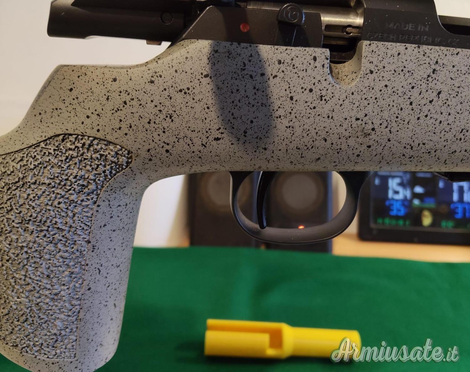 Scatto americano Timney incluso piu scatto originale mai montato, bedding posteriore, freno di bocca , canna Fluting, (superficie esterna è flangiata ,presenta dei solchi longitudinali). Questo serve a ridurre il peso complessivo dell'arma senza sacrificare la rigidità e aiuta a dissipare il calore più velocemente, camera cartuccia Match.