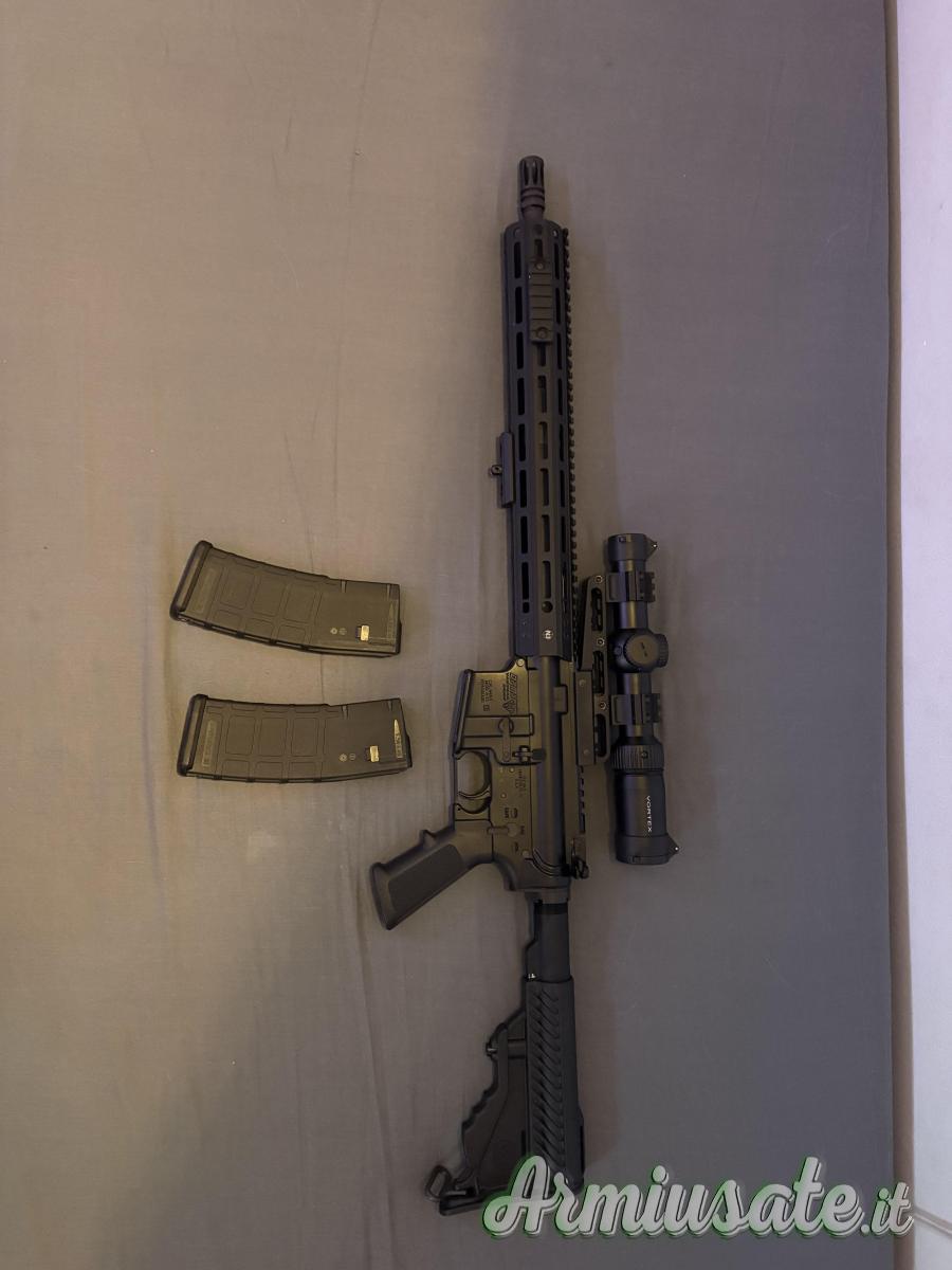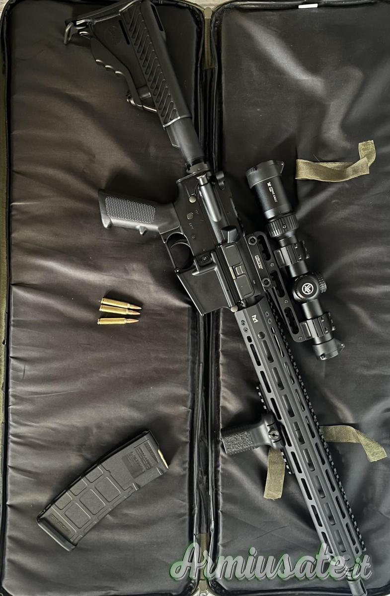 La carabina è stata usata pochissimo per tiro a lunga distanza e presenta solo qualche piccolo segno di usura sul rail. Tubo di recupero fumi abbassato per permettere l’installazione del in alluminio su tutta la canna. Viene venduta conpresa di ottica Strike Eagle 1-6x24 SFP e supporto per ottica Konus, bipiede con attacco rapido, tacche di mira, e due caricatori da 29 munizioni.