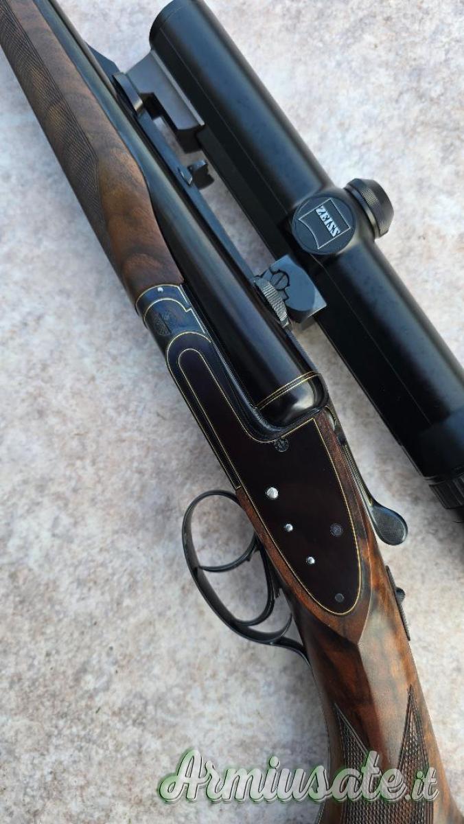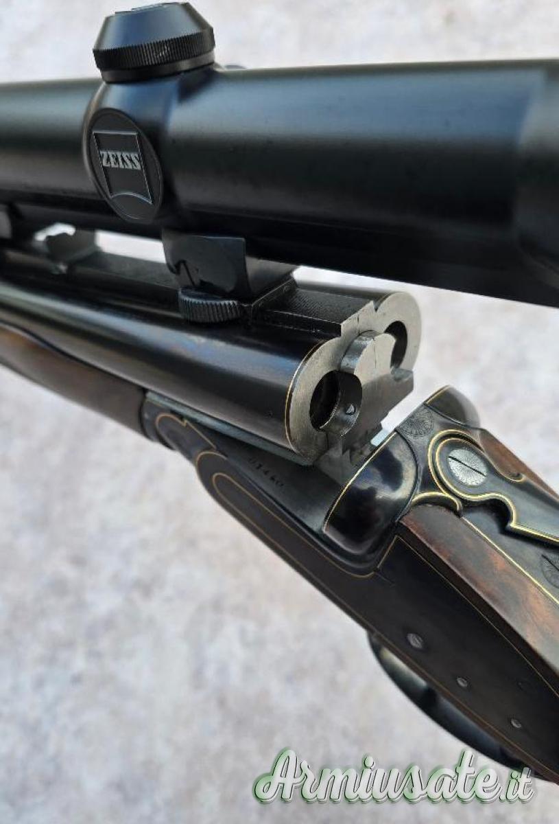 Fucili a canna rigata - Doppietta Express side lock Menegon cal 375 holland riporti in oro ottica Zeiss eccellente