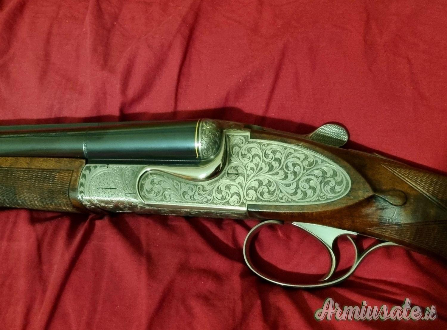 Dimensioni, linee e proporzioni strettamente referenti alla tradizione inglese (unica eccezione il monogrillo). Bascula con cartelle laterali finita ad "Argento vecchio" interamente incisa a mano, canne con bordino in oro alla culatta, calcio in noce scelto lucidato a mano con finitura "true oil".