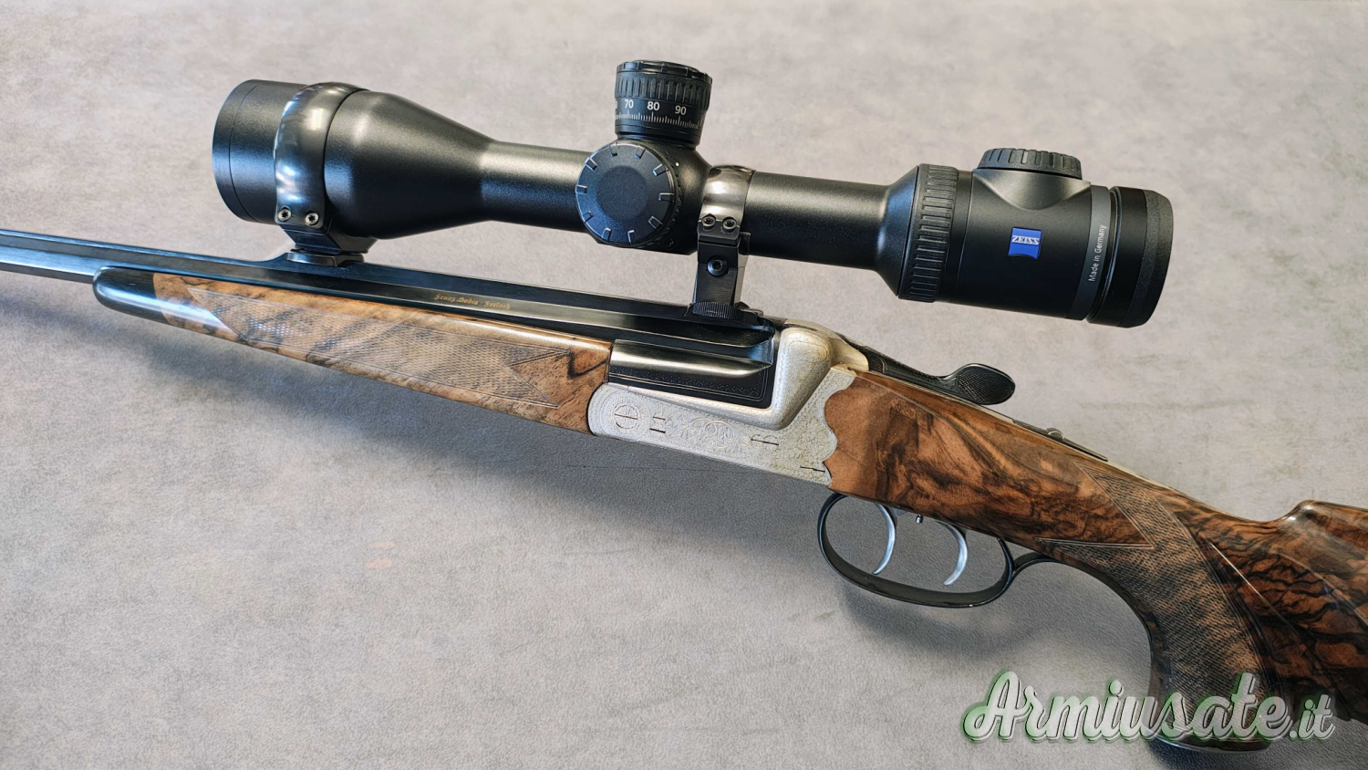 Ottica Zeiss Victory V8 1,8-14×50 BTV. Canna ottagonale e ramponi ricavati dalla medesima barra di acciaio massello.