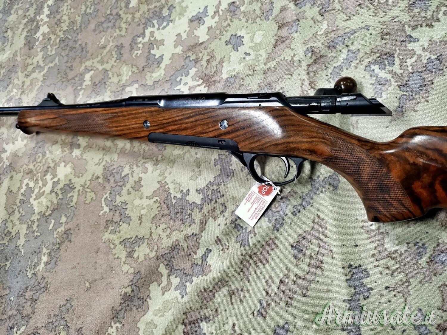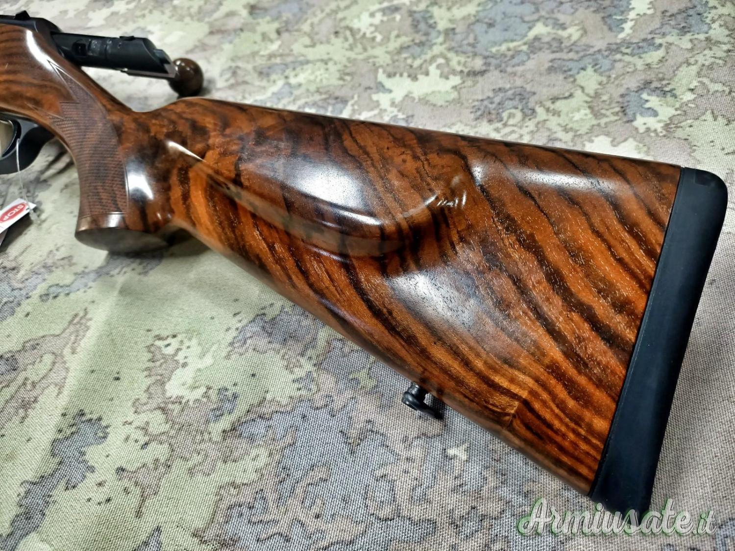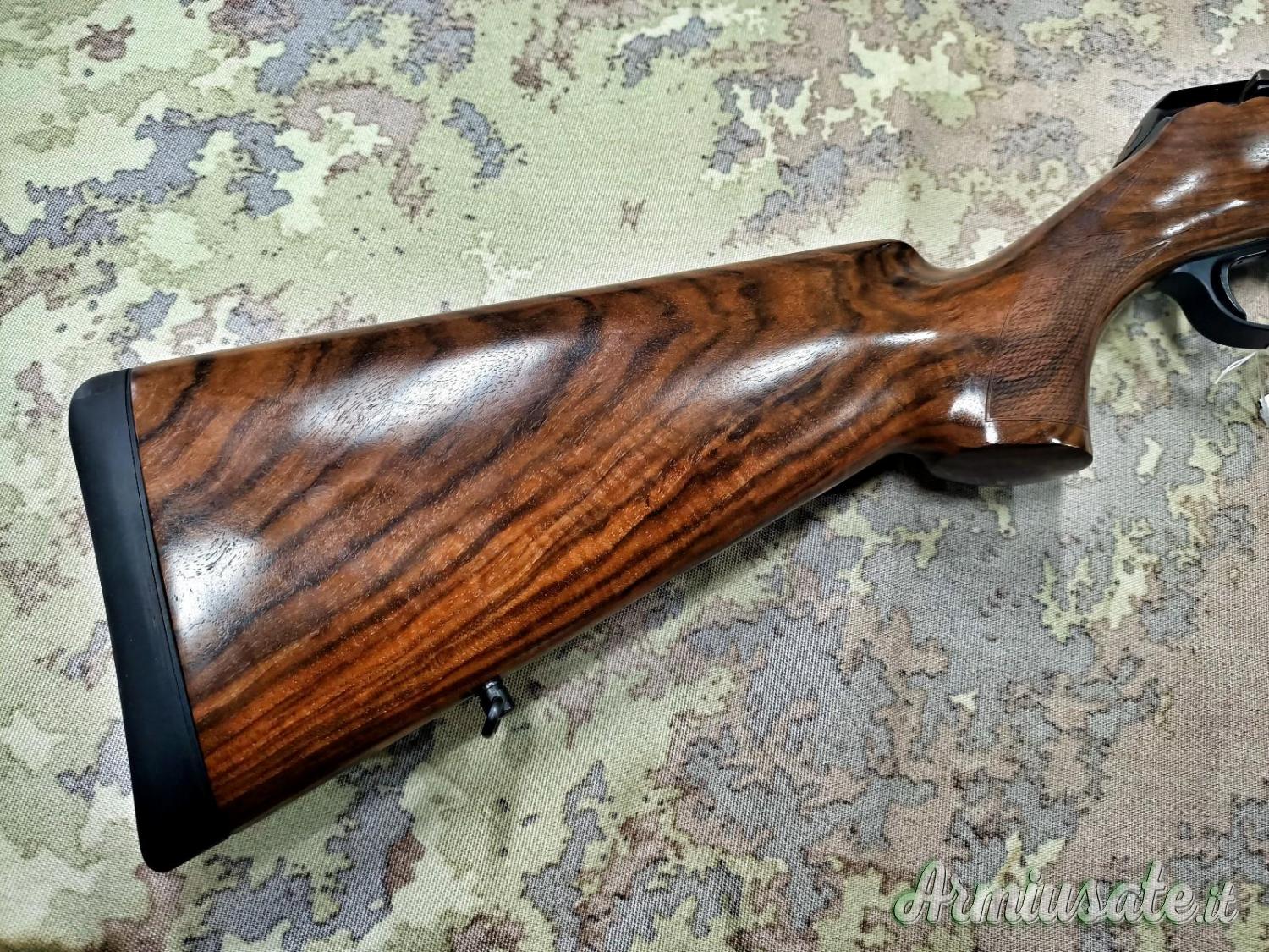 Carabina di pregio con legni in noce lusso, pomello armamento otturatore in legno.