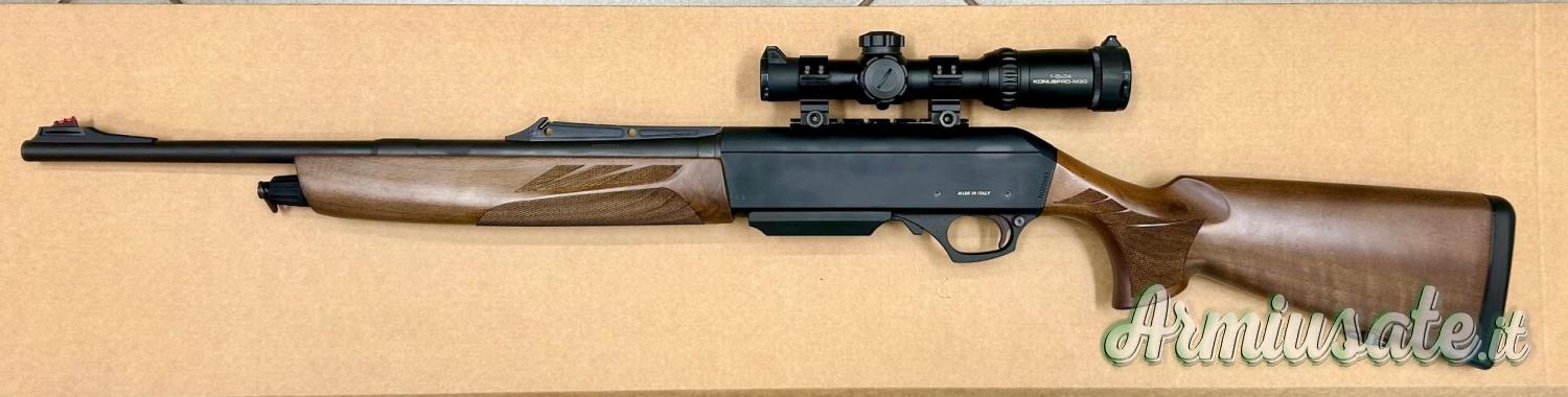 Meravigliosa carabina semiautomatica da battuta, in calibro 30.06 realizzata interamente in Italia. Funzionamento a recupero di gas con corsa corta e canna da 51cm. Qualita' al top Made in Italy!