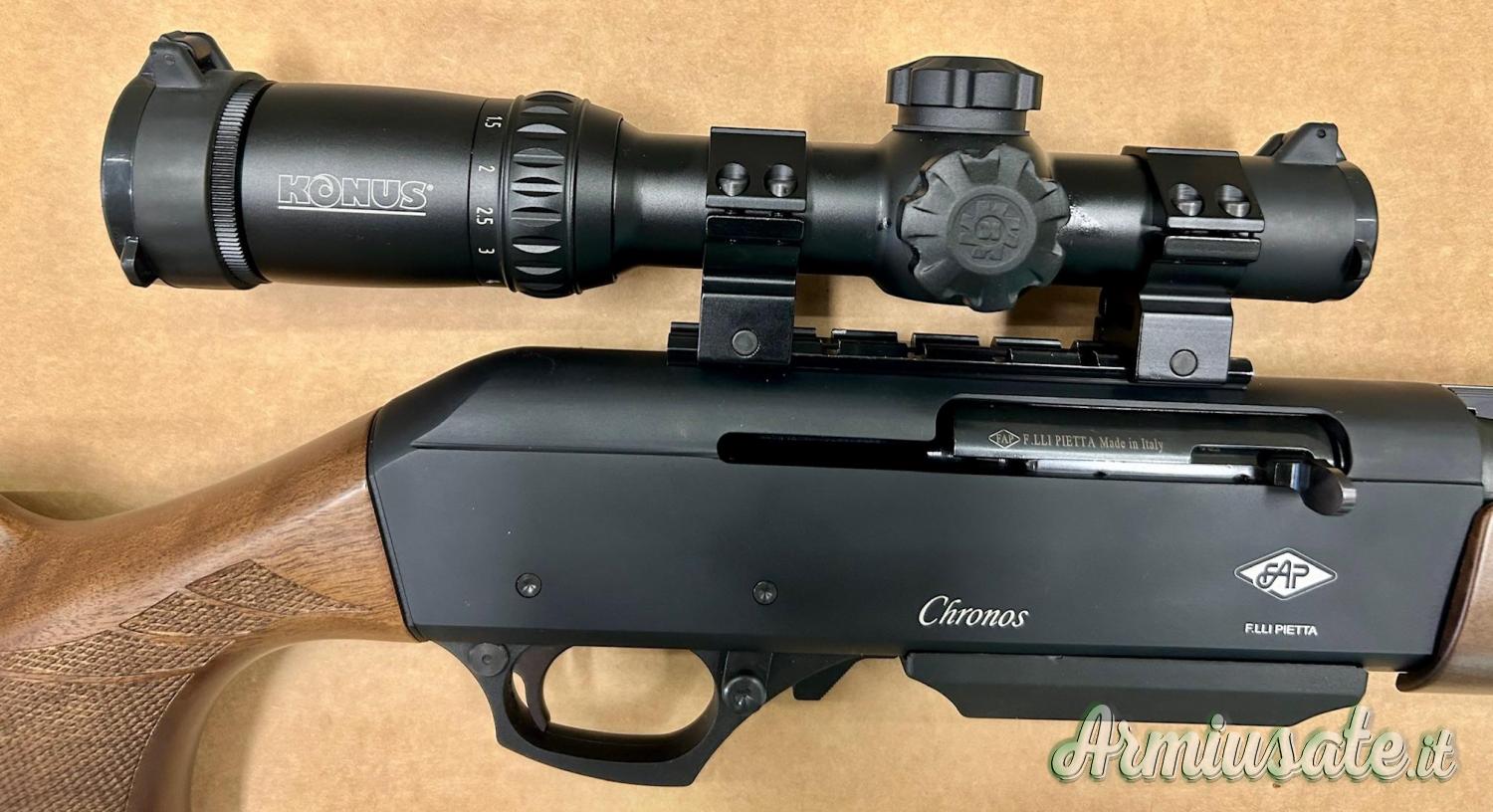 L'arma viene fornita con slitta Picatinny, anelli ed ottica da battuta KonusPro-M30 1-6×24 , pronta per essere portata a caccia!