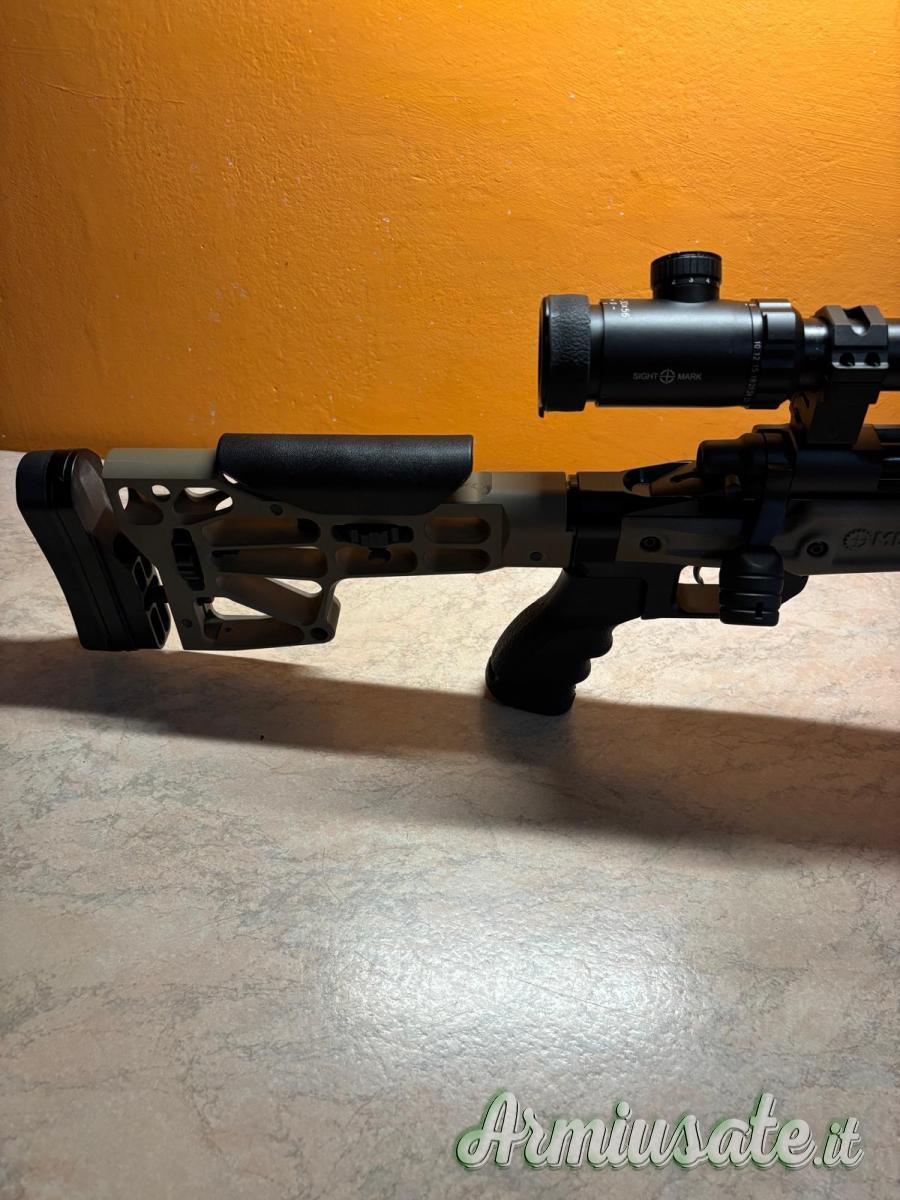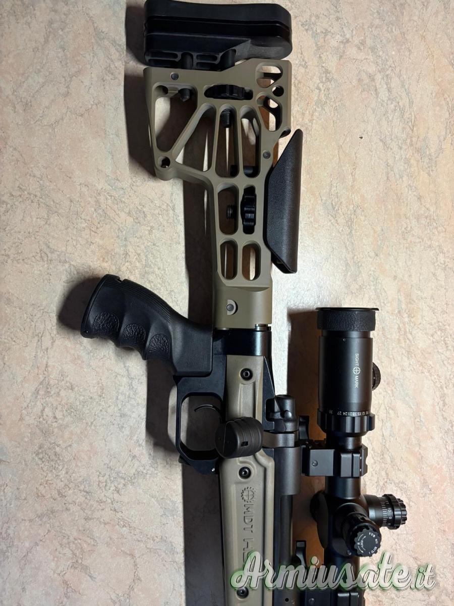Sparato una scatola di munizioni e poi riposto in collezione, l'arma viene ceduta completa do ottica Sightmark 3-30x56, bipede, freno di bocca Gladius, pomello otturatore maggiorato e ovviamente caricatore.