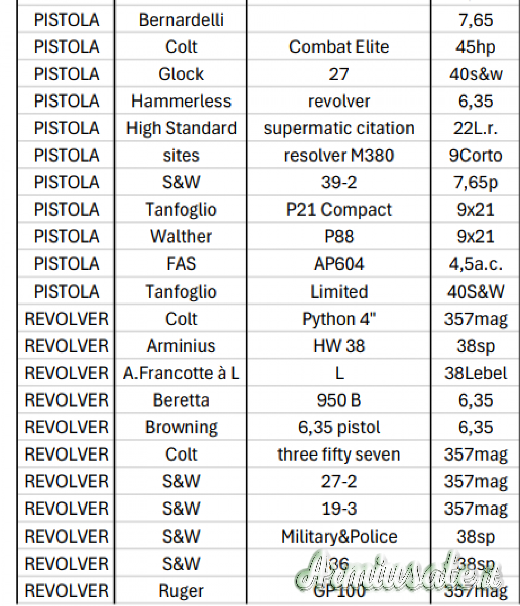 In tutto 40(circa) tra lunghe e corte, carabine, canna liscia, revolver e semiauto, a/c.