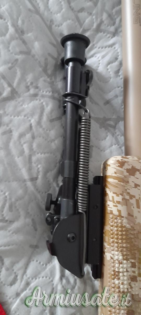 La calciatura, in materiale sintetico ad alta resistenza,si presenta con una ricopertura camo tipo desert. Il calcio è con guanciale regolabile sia in elevazione che in derivazione e regolabile anche in lunghezza per mezzo di appositi distanziali da applicare davanti al calciolo di gomma.
