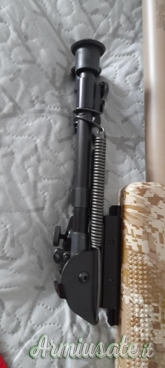 La calciatura, in materiale sintetico ad alta resistenza,si presenta con una ricopertura camo tipo desert. Il calcio è con guanciale regolabile sia in elevazione che in derivazione e regolabile anche in lunghezza per mezzo di appositi distanziali da applicare davanti al calciolo di gomma.