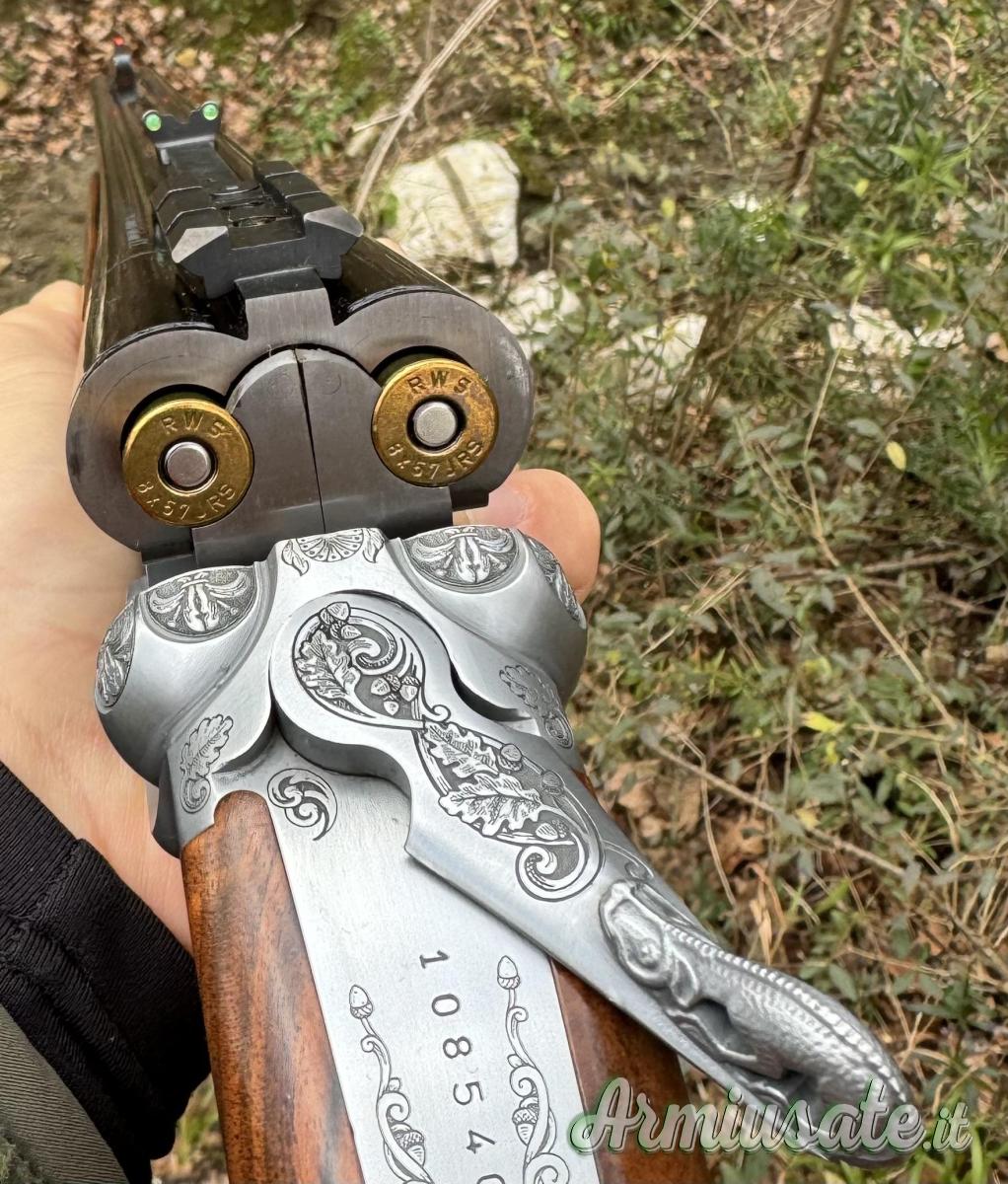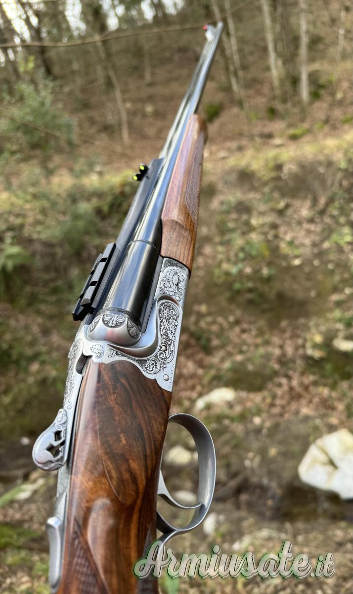Cedo Express Sabatti safari classic fuori catalogo pezzo unico su commissione raffinato e preciso in 8x57 jrs, ha la sua valigetta e corredato di slitta picatinni fatta su misura, bindellino arabescato a mano, chiave traforata.