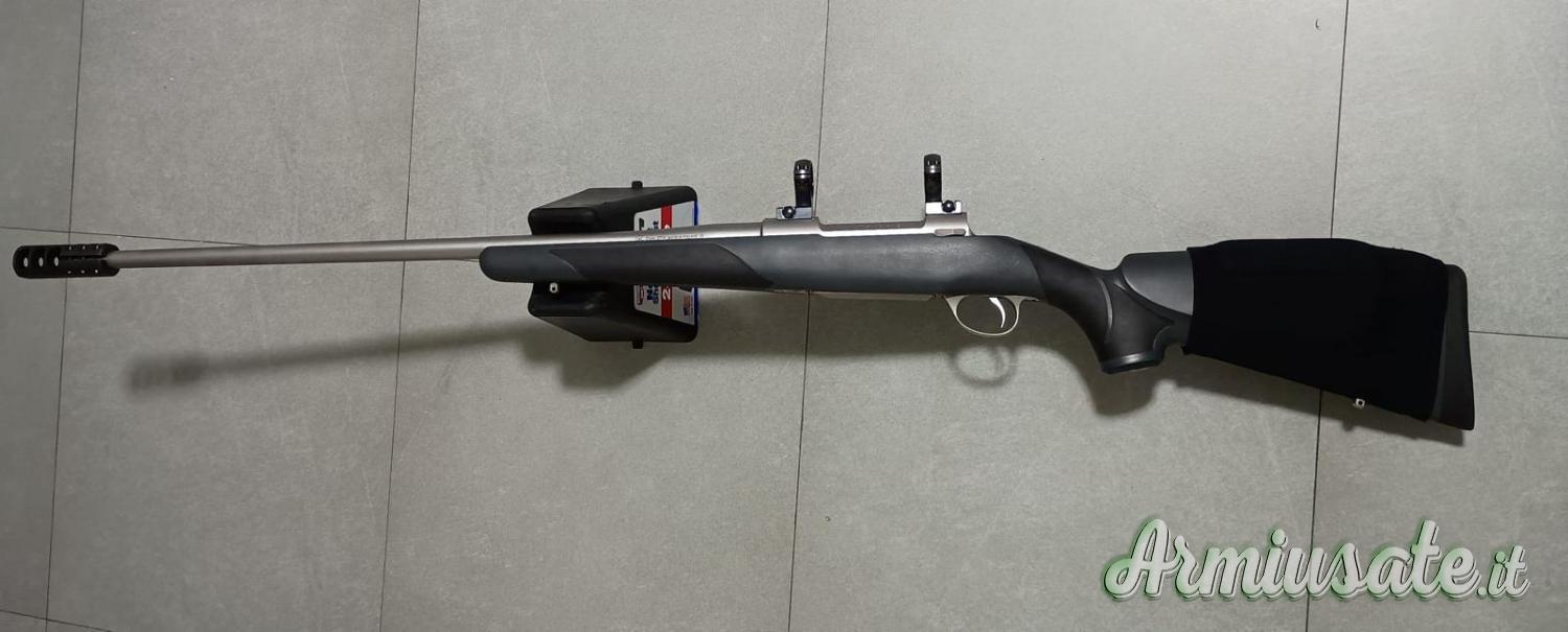 Bellissima carabina inox, usata pochissimo, sempre ferma in fuciliera, sparati circa 60 colpi, cedo per totale inutilizzo, è dotata di freno di bocca amovibile e attacchi da 30 mm optilock e i bossoli che ha sparato.