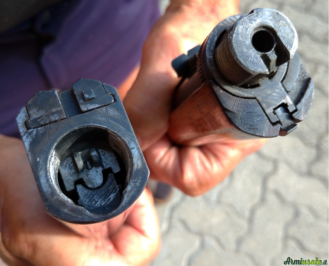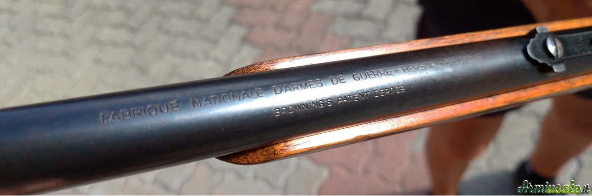Questa appartiene ai primi modelli prodotti, con sportello di caricamento delle cartucce sulla parte alta del calcio e marcata ancora FABRIQUE NATIONALE D’ARMES DE GUERRE HERSTAL – BELGIQUE.
