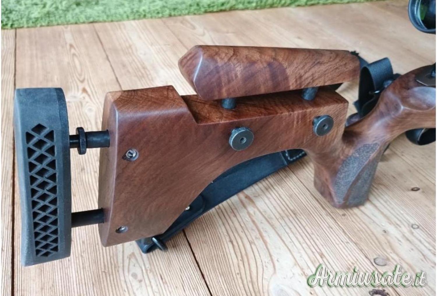 Carabina acquistata a novembre 2023, fornita con calciatura originale dotata di poggiaguancia (busk) regolabile, oltre a una calciatura in noce di altissima qualità, di produzione artigianale.