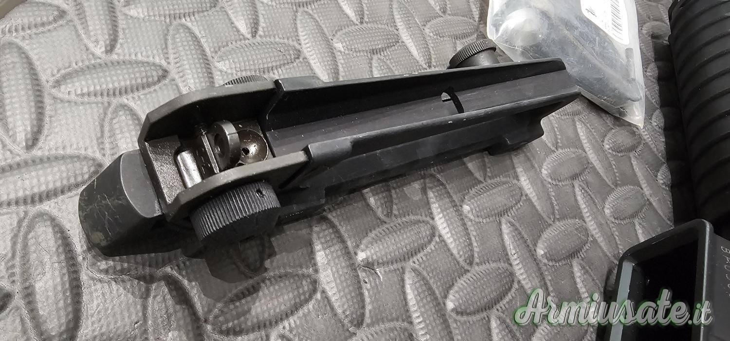 In dotazione 3 caricatori , mirino e maniglia con tacca di mira.