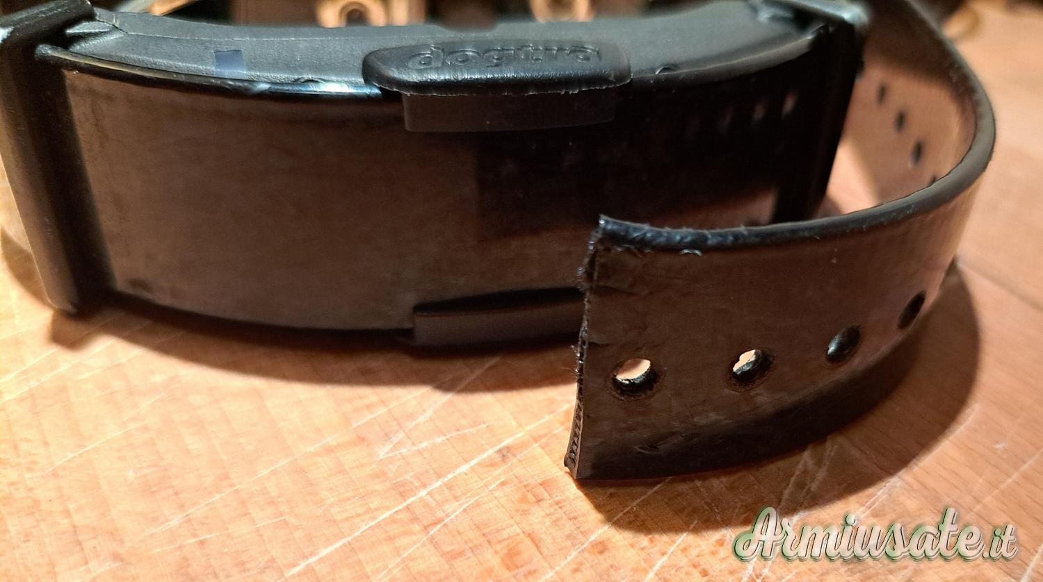 Finale del collare tagliato come da foto ma la lunghezza è sufficiente per cani da caccia di media grandezza.