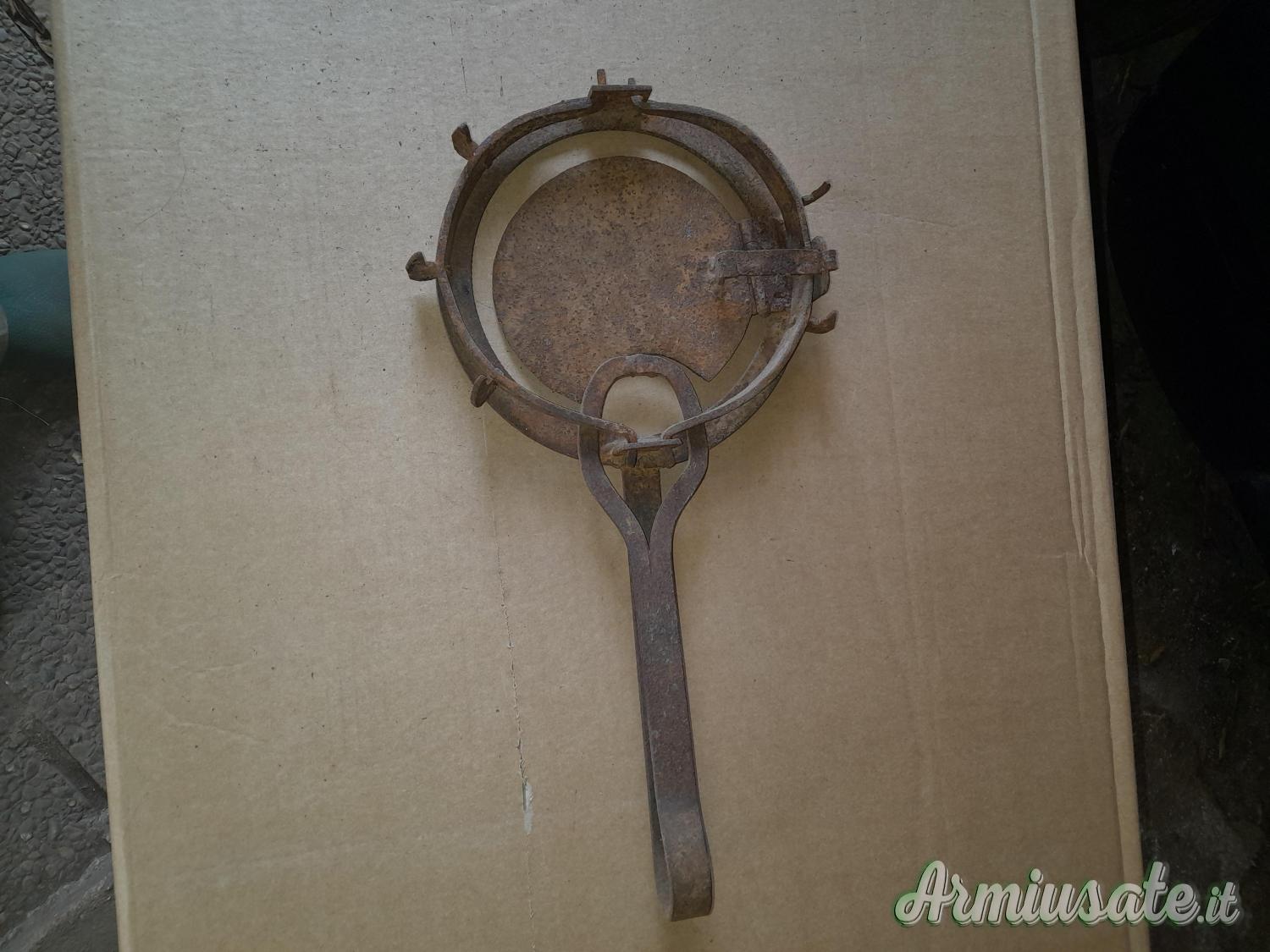 Antica trappola per volpi. Oggetto con probabilmente più di 100 anni, ma perfettamente funzionante. Lunghezza totale 45 cm. Funzionamento a pressione. Cedo ad Euro 80,00