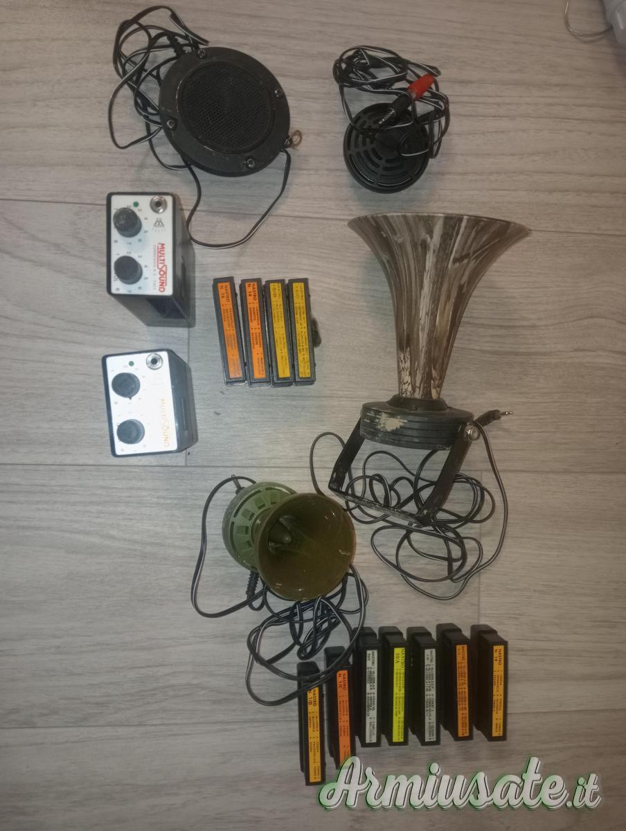 Cedo 2 riproduttori acustici multisound p8/RC,uno un po' più usato e uno nuovo,tutti e 2 funzionanti,completi di 2 trombe,4 nastri acquatici,6 x capanno e uno x quaglie,totale 11 nastri e 2 microfoni da capanno