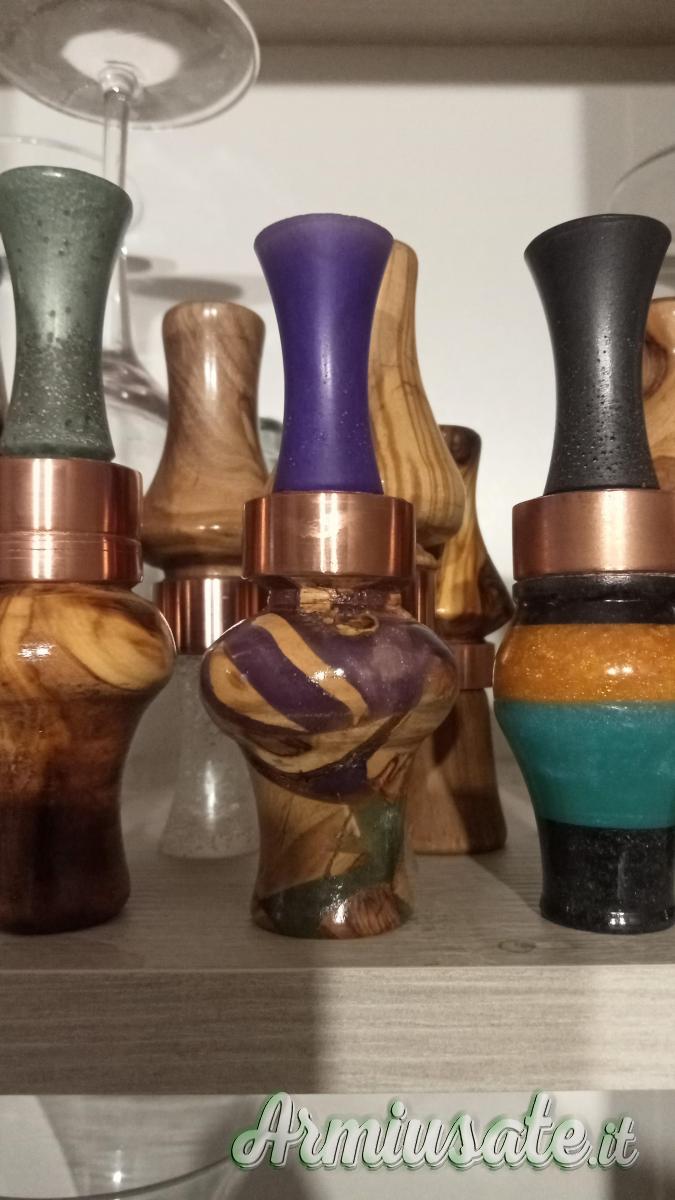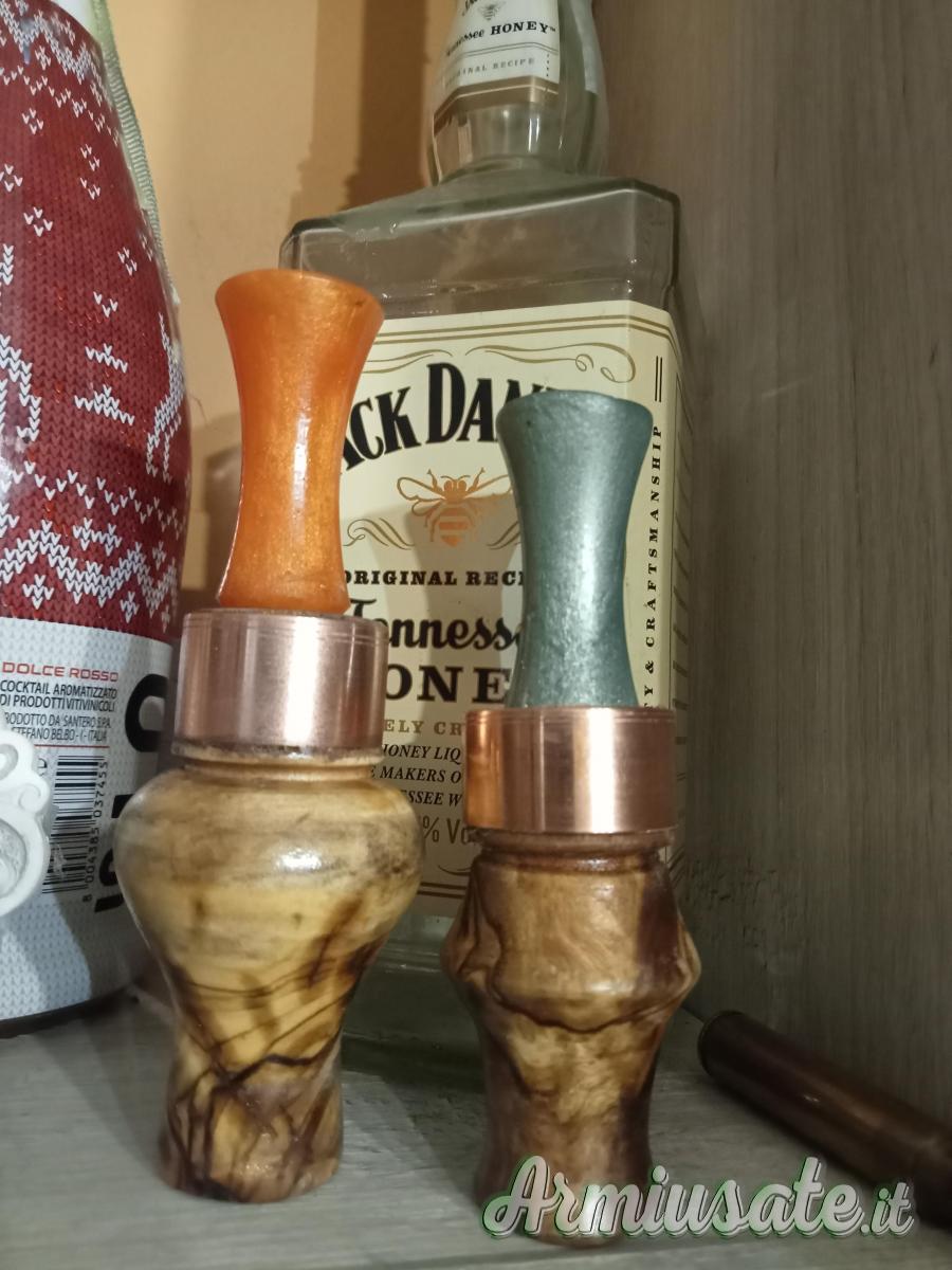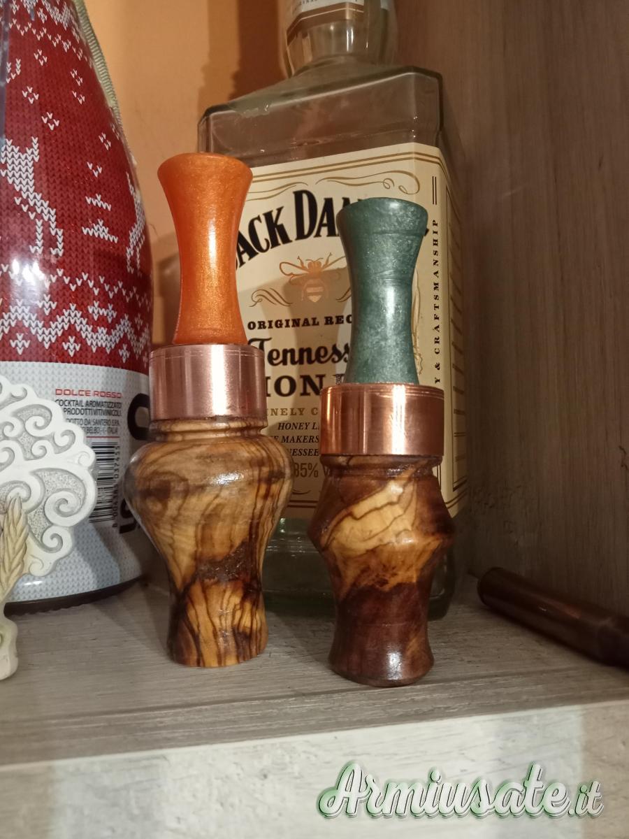 Fatti completamente a mano,in legno di ulivo oppure a richiesta, richiamo per alzavola femmina e germana, suono bellissimo e bellissimo da vedere, spedizione a carico dell' acquirente