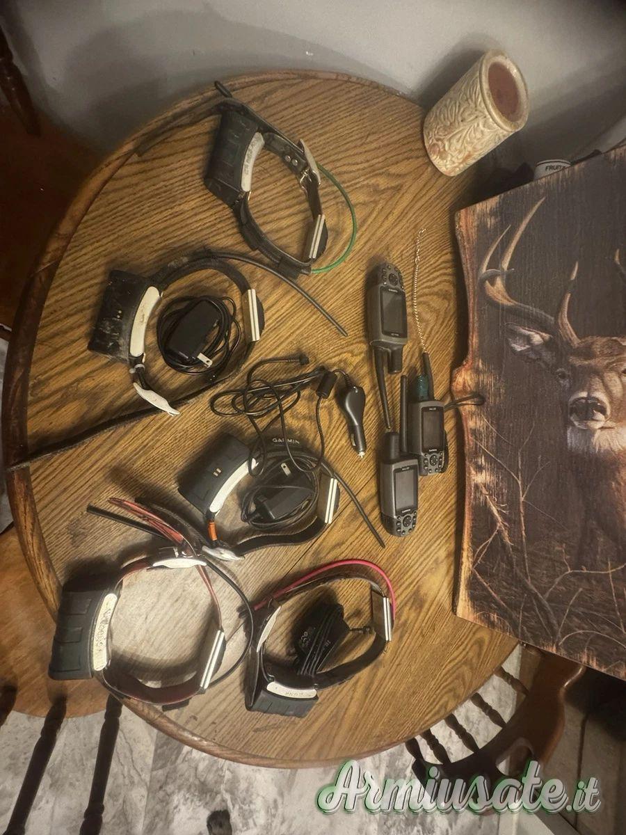 5 collari DC30 perfettamente funzionanti. 3 caricabatterie da parete. Un caricabatterie da auto. 2 custodie rigide. 2 radiocomandi Astro 220 funzionanti e un Astro 220 funzionante ma danneggiato, ideale per pezzi di ricambio. Tutti i collari si caricano e mantengono la connessione; alcuni hanno antenne a lungo raggio, altri antenne standard.